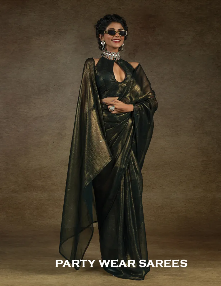 Mint Green Zari Tissue Swarovski Work Handwoven Saree