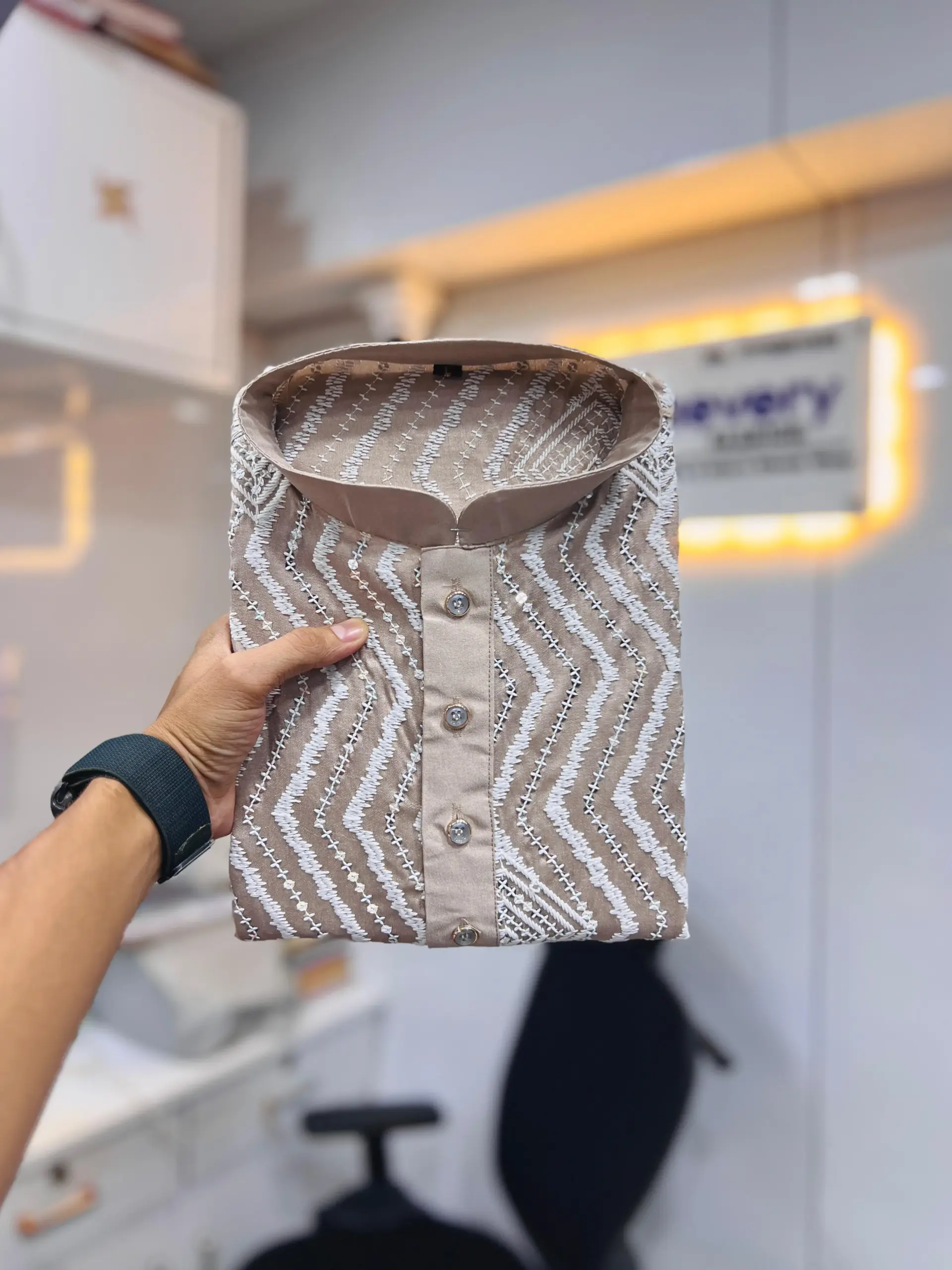 Brown Soft Silk Sequence Embroidered Men’s Kurta Pyjama