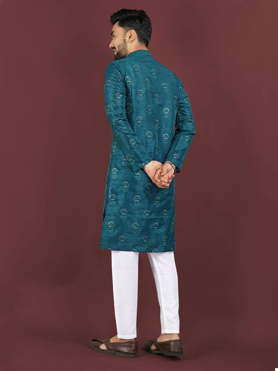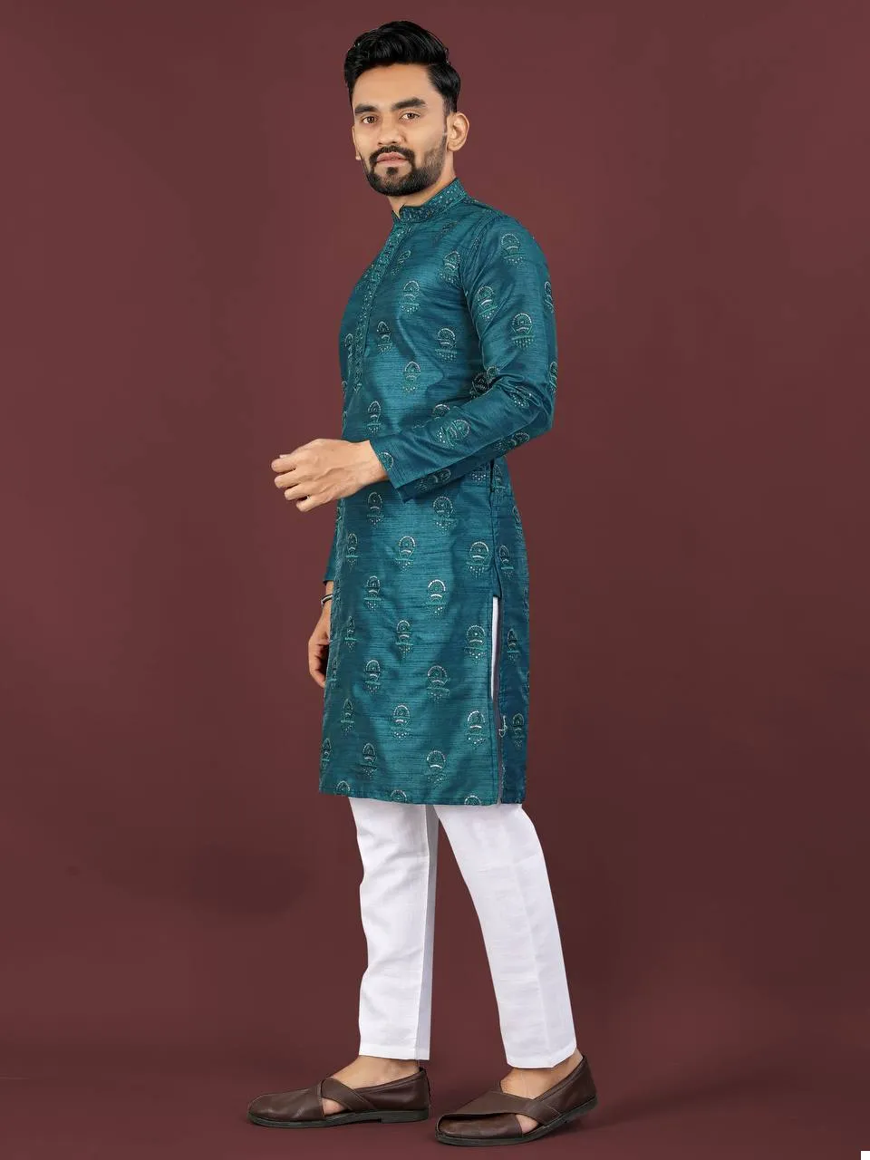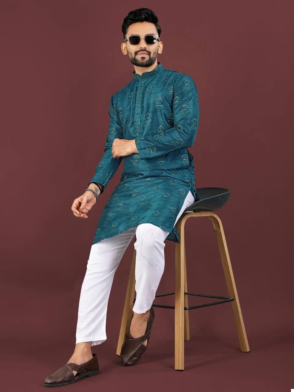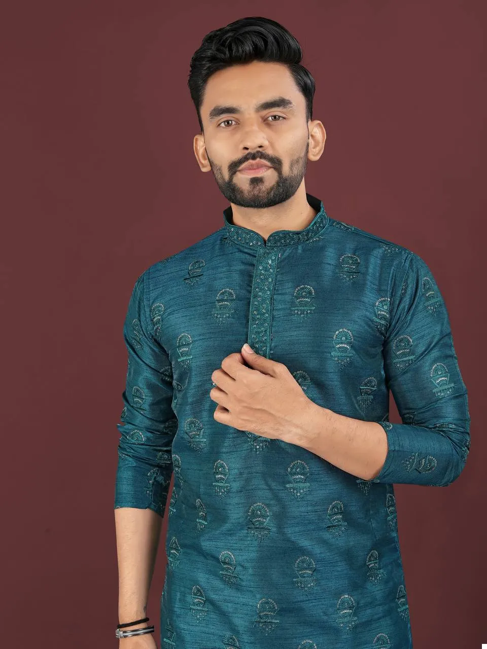 Why Banglori Silk? This fabric holds its shape exceptionally well, ensuring the kurta maintains a sharp, crisp silhouette throughout the event.