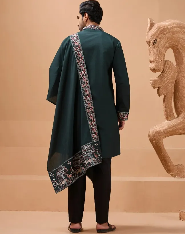 - Weddings & Receptions: The Bottle Green embroidery makes it a “Power Look” for late-evening events.