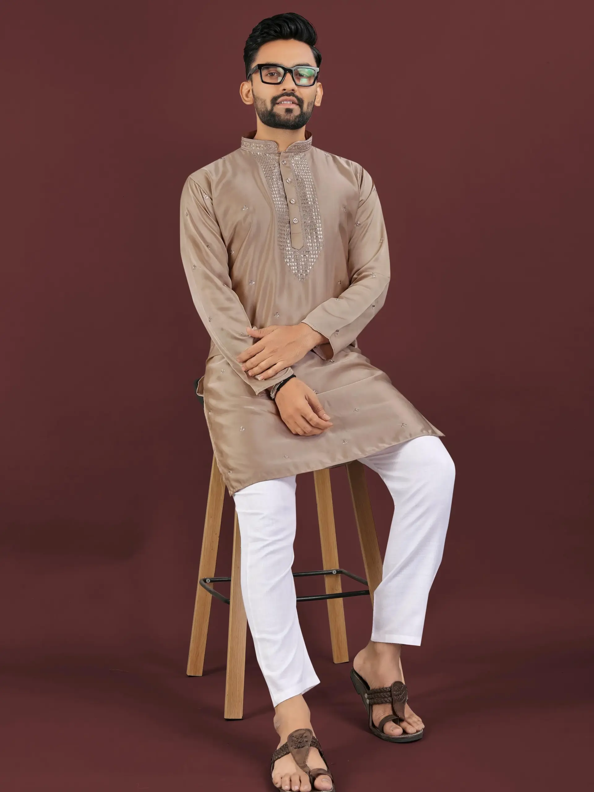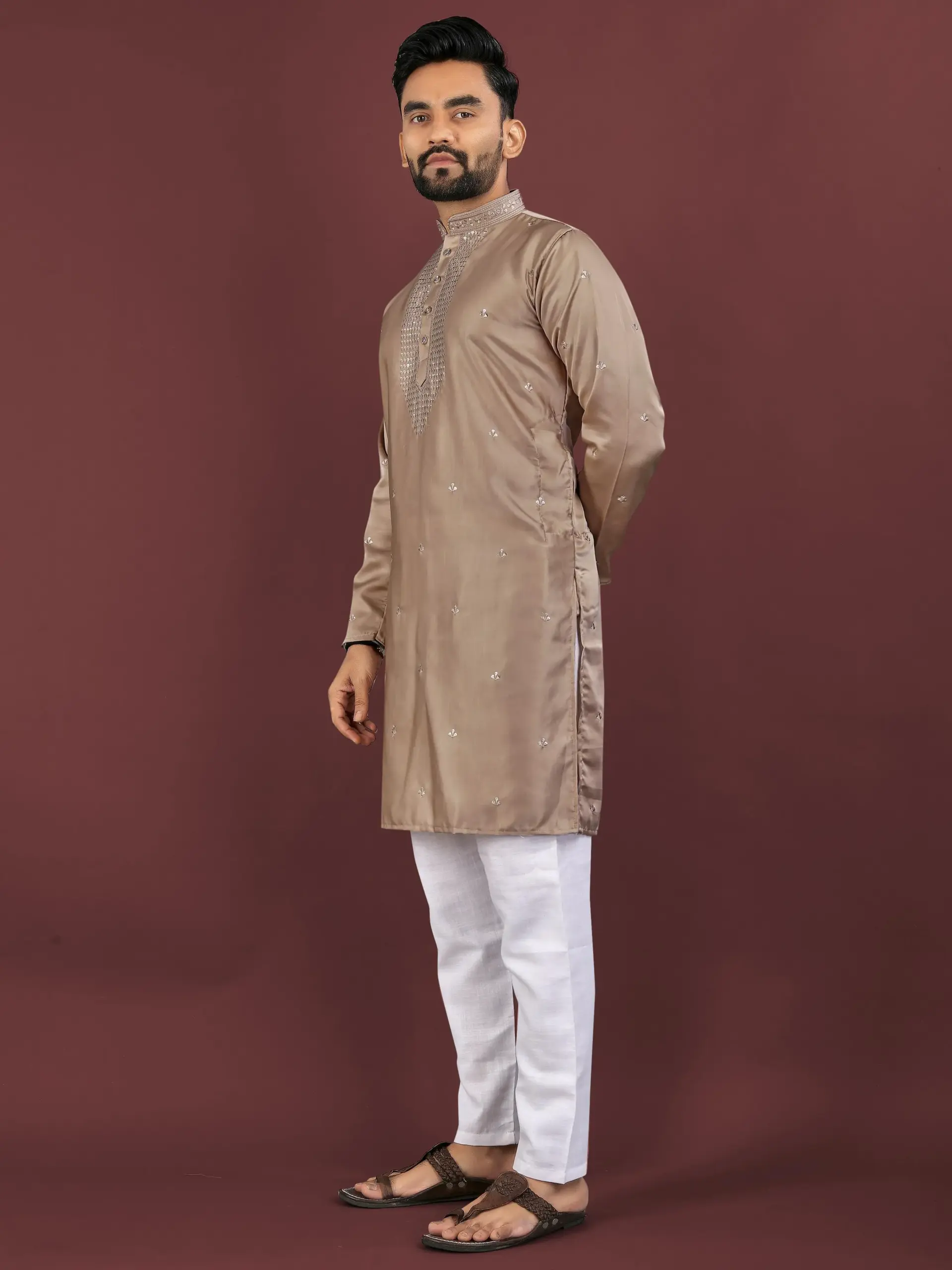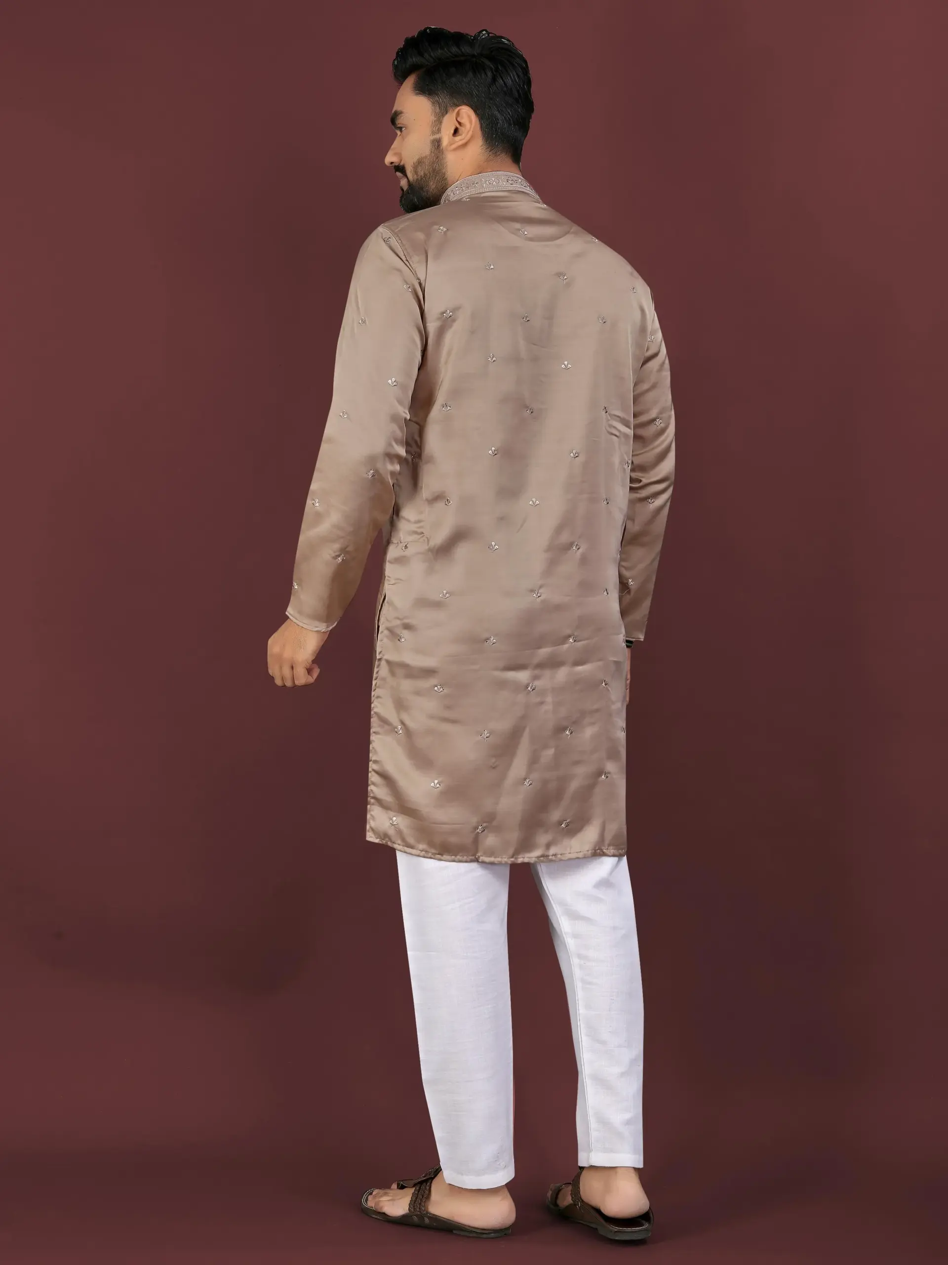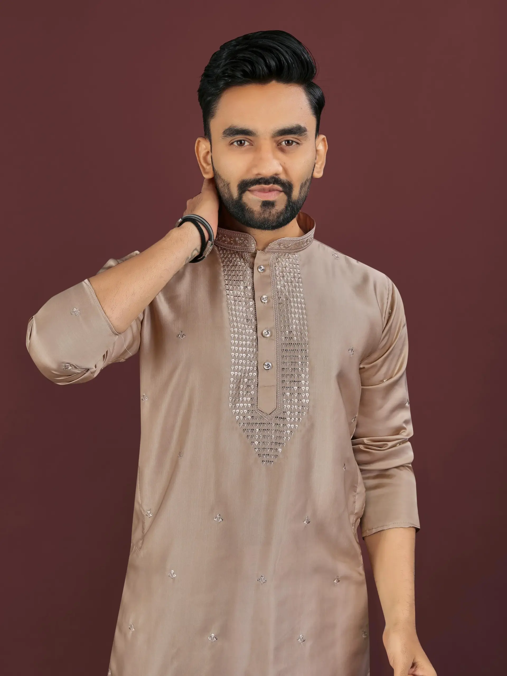 Step into the spotlight with this exquisite Brown Viscose Silk Embroidered Sequence Men’s Kurta Pajama. Combining the purity of brown with a subtle shimmer, this outfit is designed for grand occasions, ensuring a regal and sophisticated appearance with supreme comfort.
