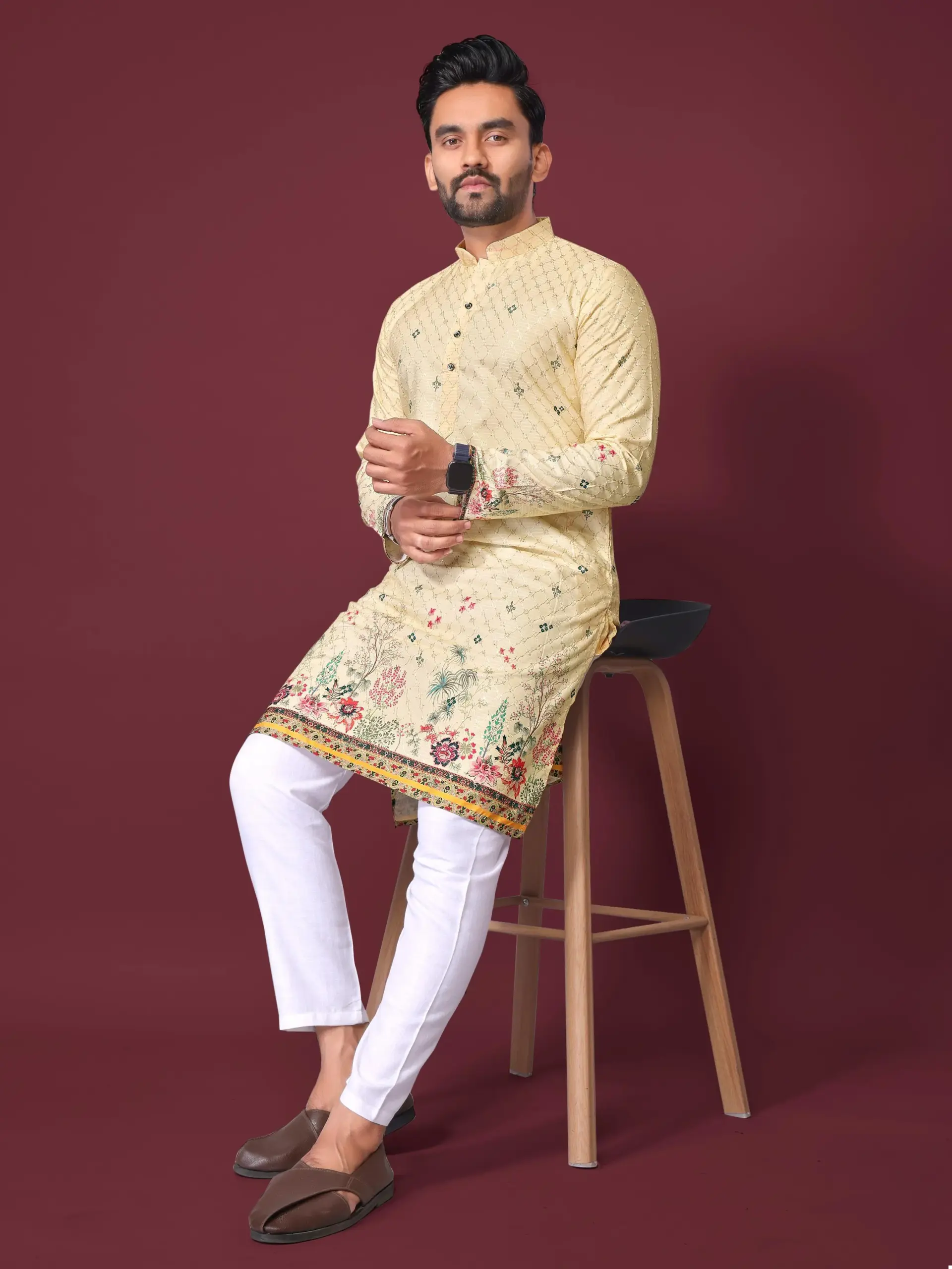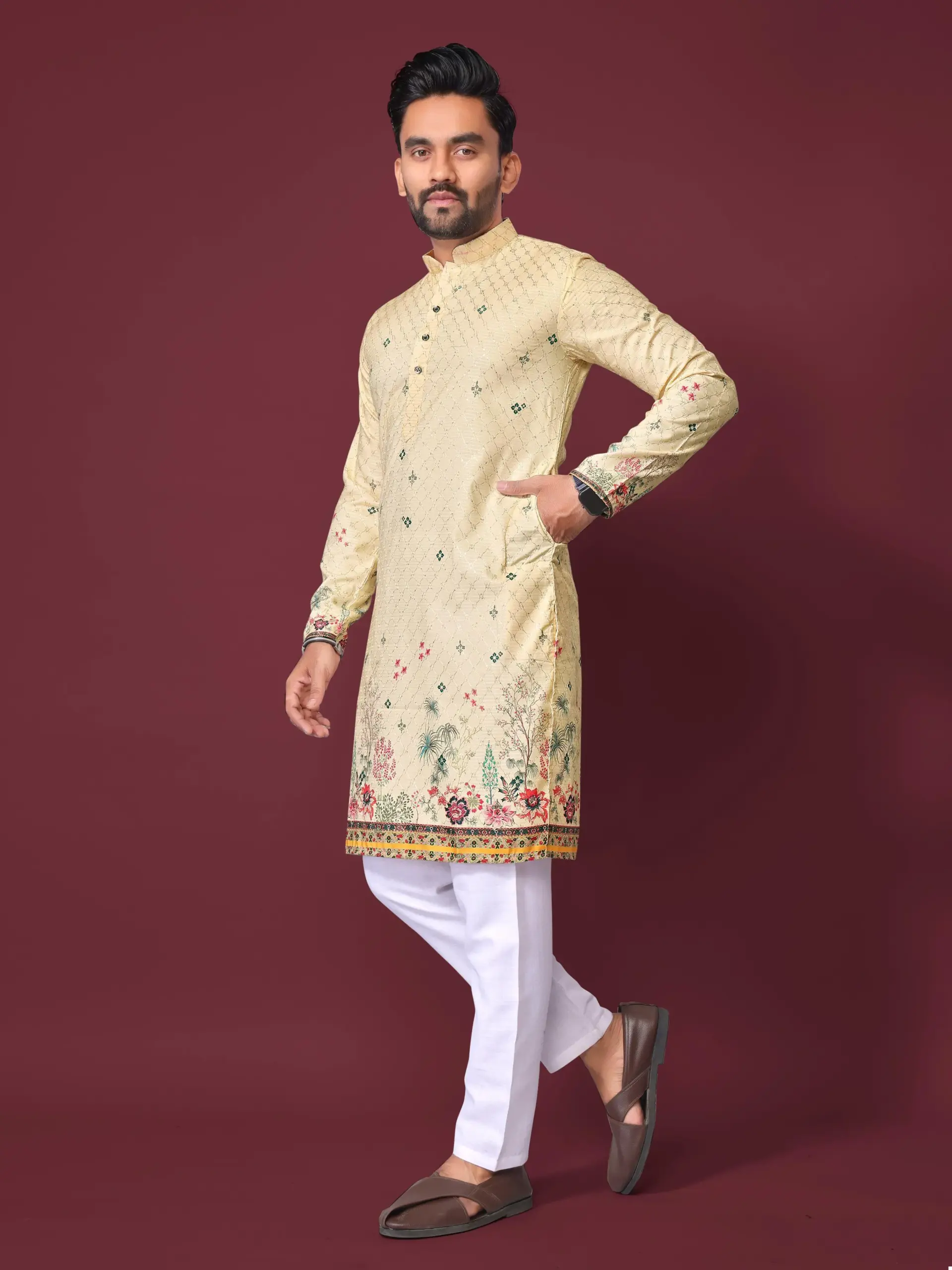 - Fabric Blend: Crafted from a soft and breathable Cotton-Rayon blend. This combination offers the cooling comfort of cotton with the superior drape and slight sheen of rayon, ensuring maximum ease of movement.