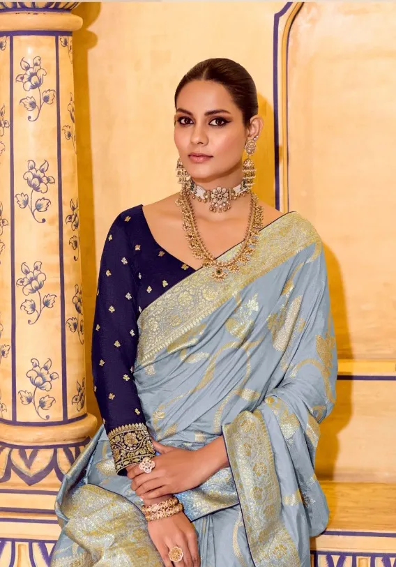 Grey Crepe Silk Zari Weaving Work Saree
