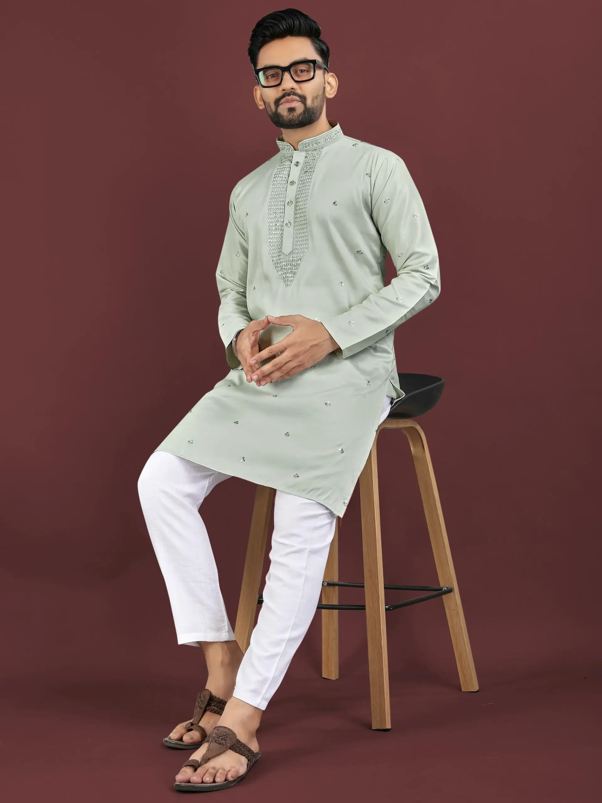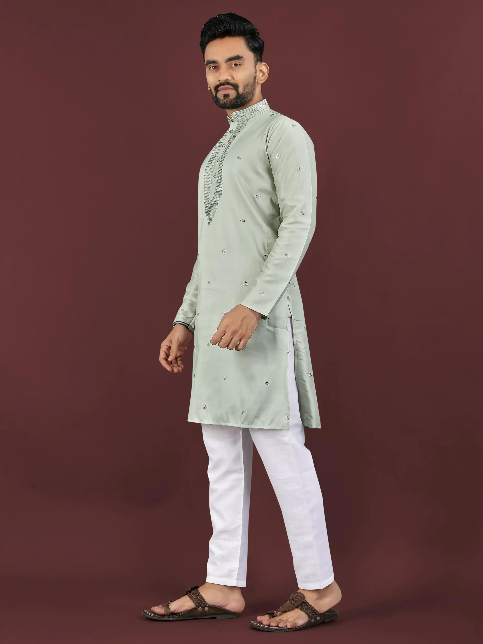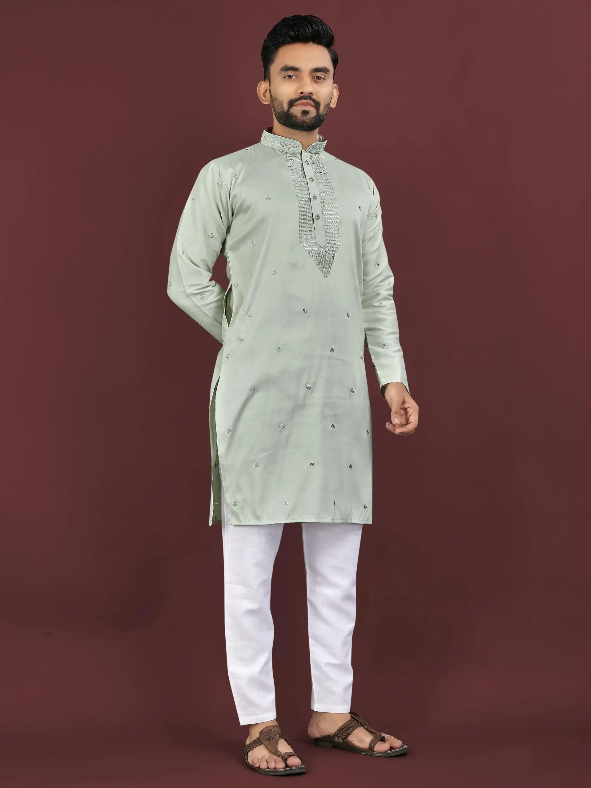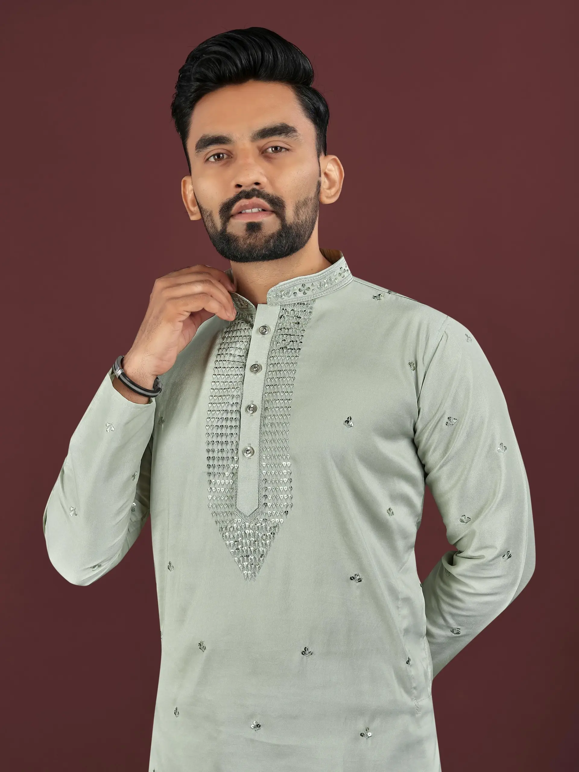 Grey Viscose Silk Sequence Men’s Kurta Pyjama