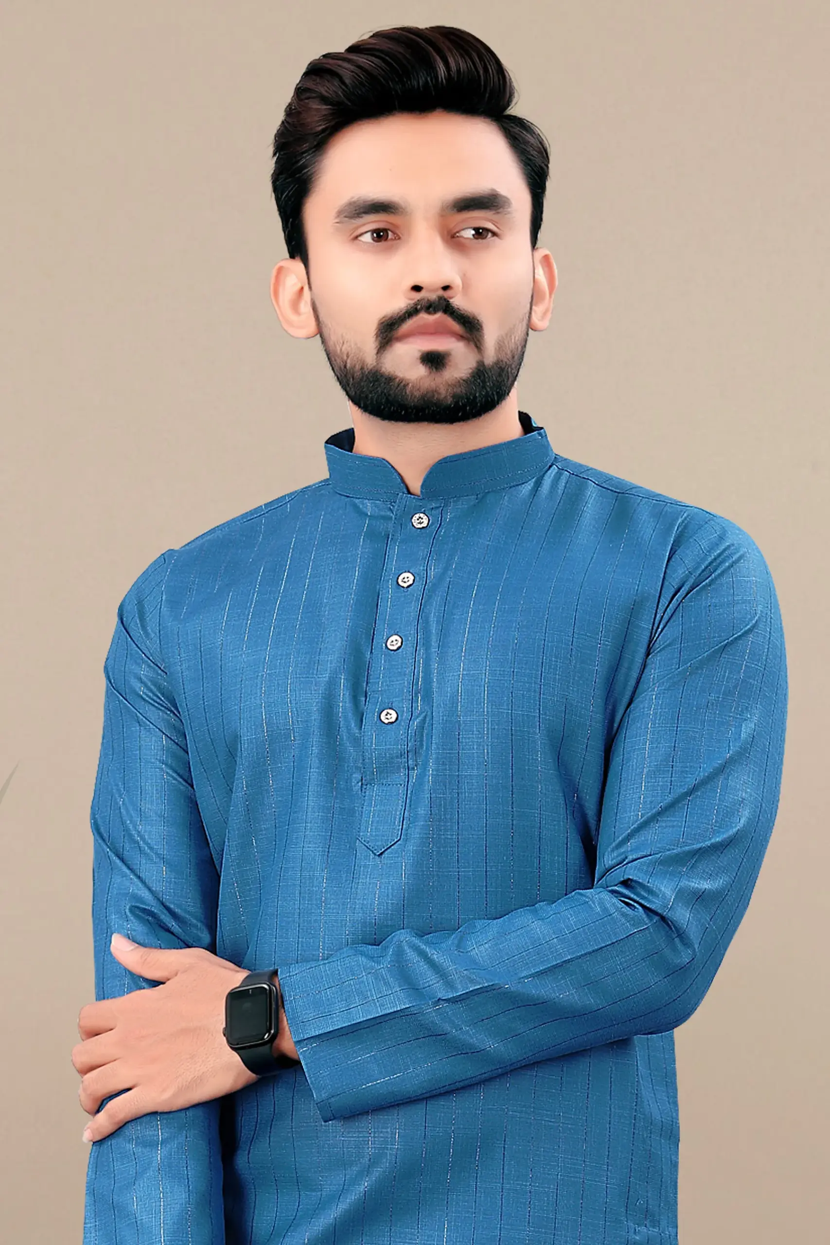 Kurta Fabric and Color: The Kurta is made from Cotton in a classic Light Blueย hue.