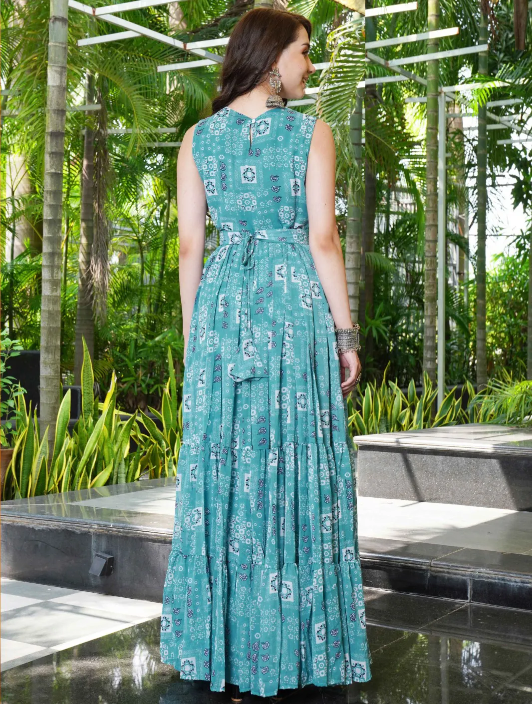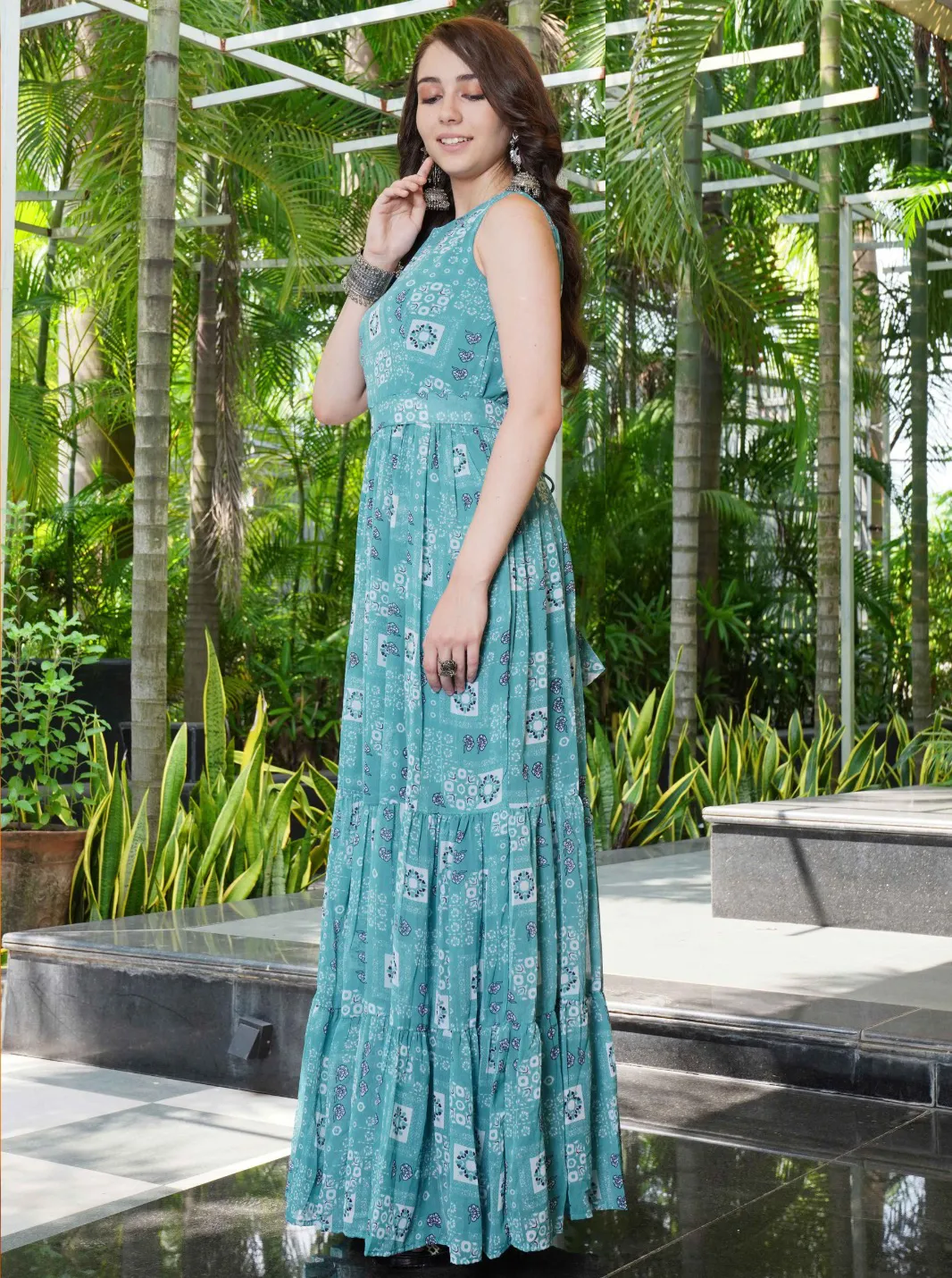 Light Blue Georgette Floral Printed Gown With Belt