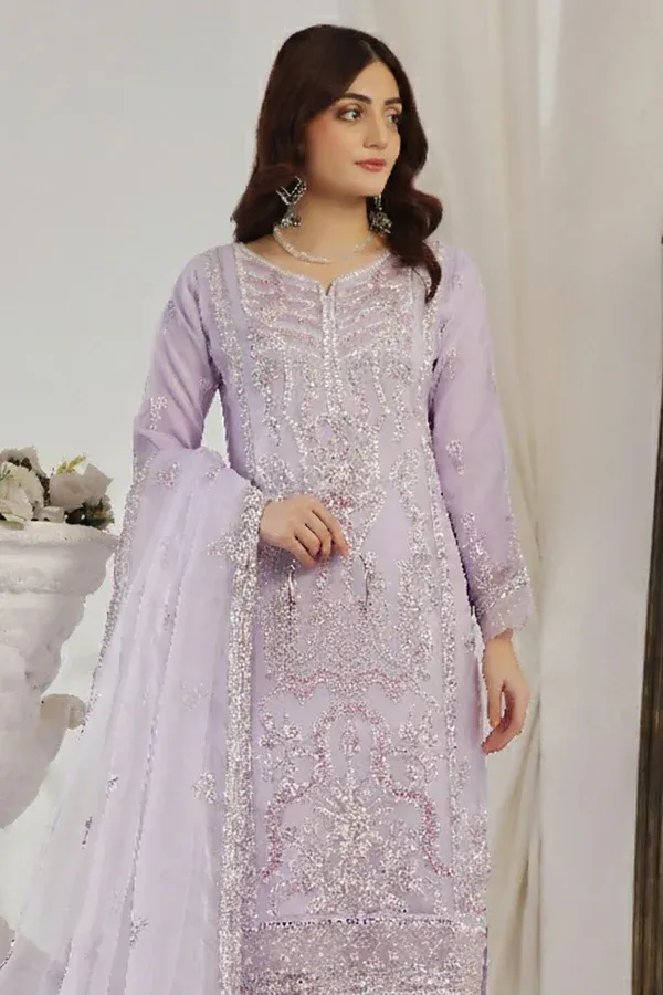 The vibrant Light Purpleย color makes this Pakistani suit perfect for festivals, parties, weddings, haldi functions, and traditional celebrations. Style it with statement jewelry and heels for a graceful ethnic look.