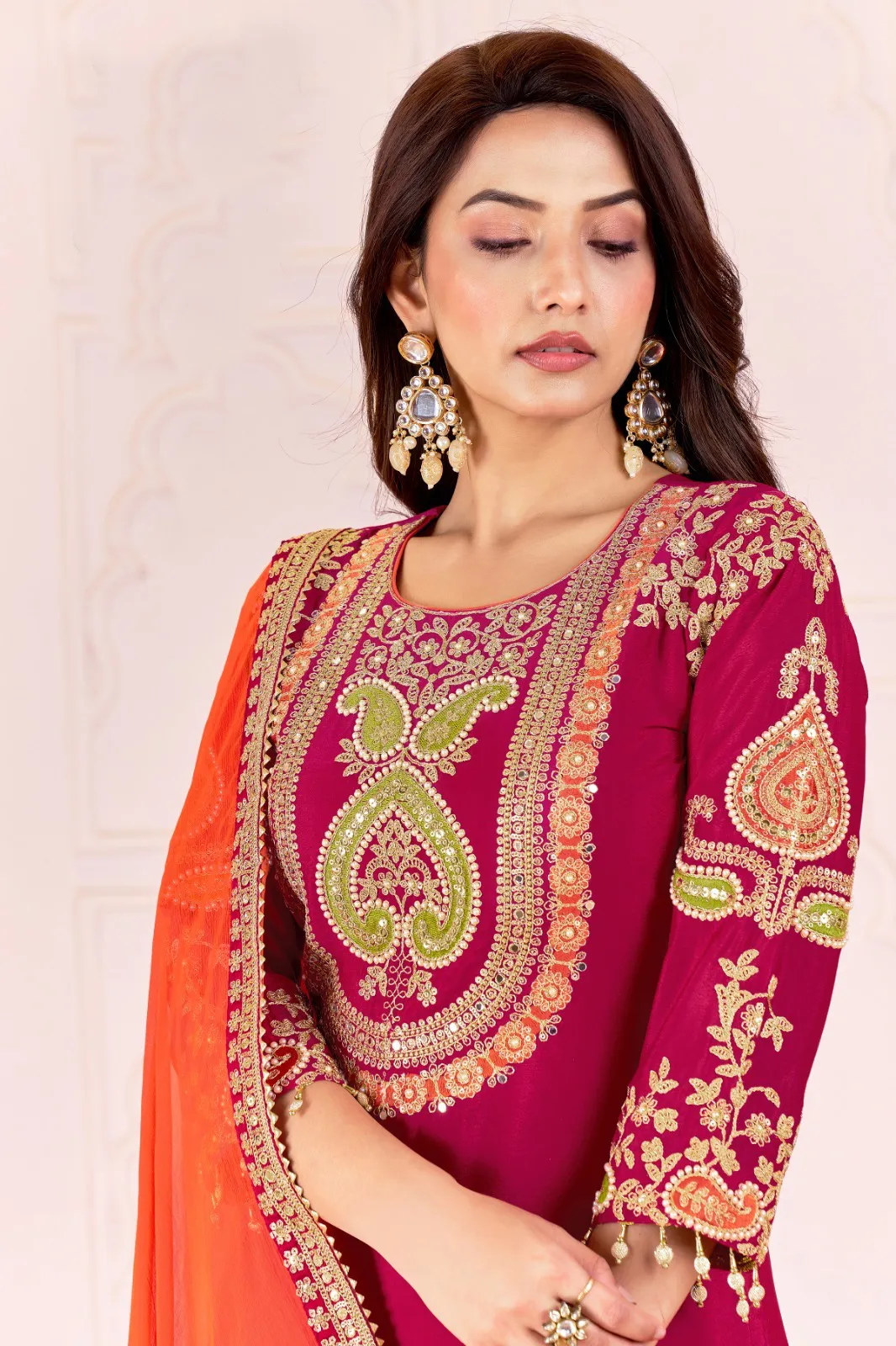 Magenta Premium Chinon Embroidered Traditional Sharara Suit