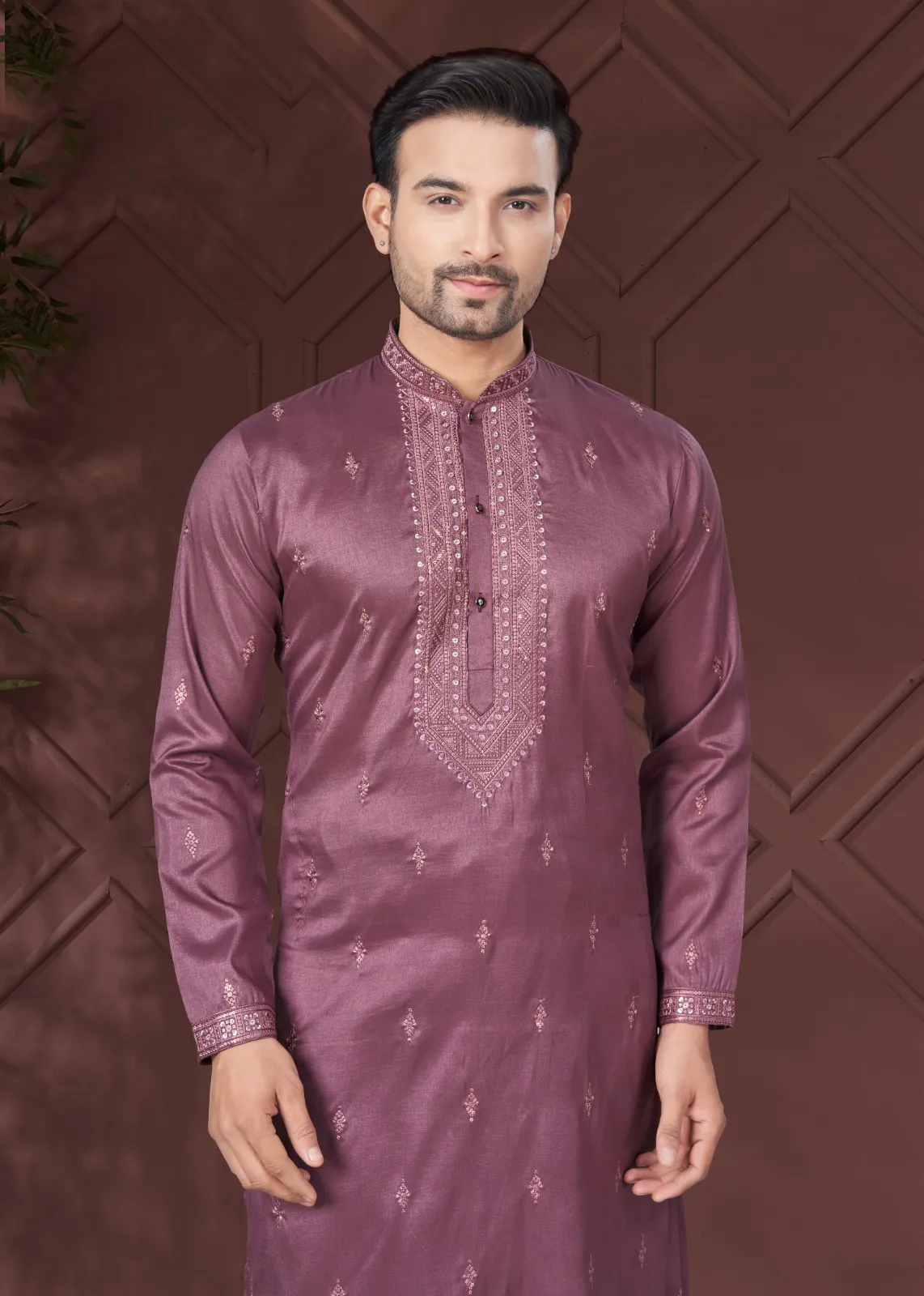 Mauve Pure Silk Traditional Ethnic Wear Men’s Kurta Pajama Set