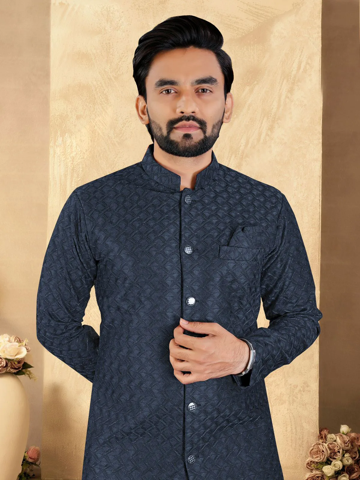Navy Blue Imported Fabric Men’s Indo Western Collection