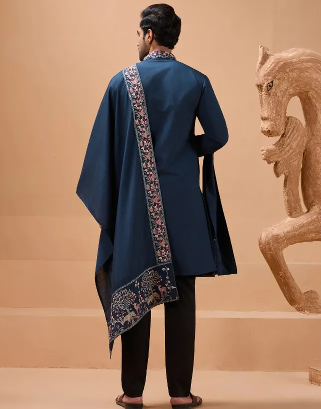 - Work: Features thread-work and sequin (sequence) embroidery, typically concentrated on the chest, mandarin collar, and cuffs for a shimmering, regal effect.