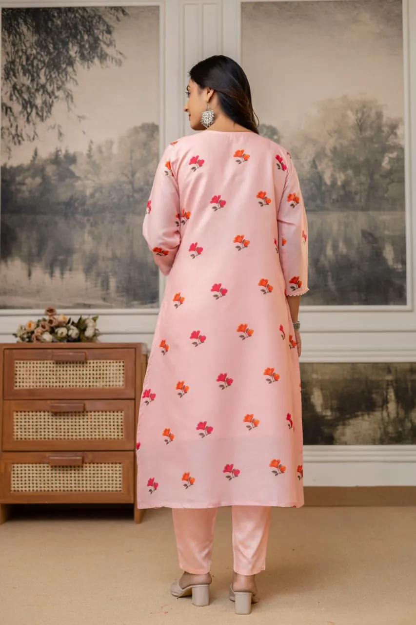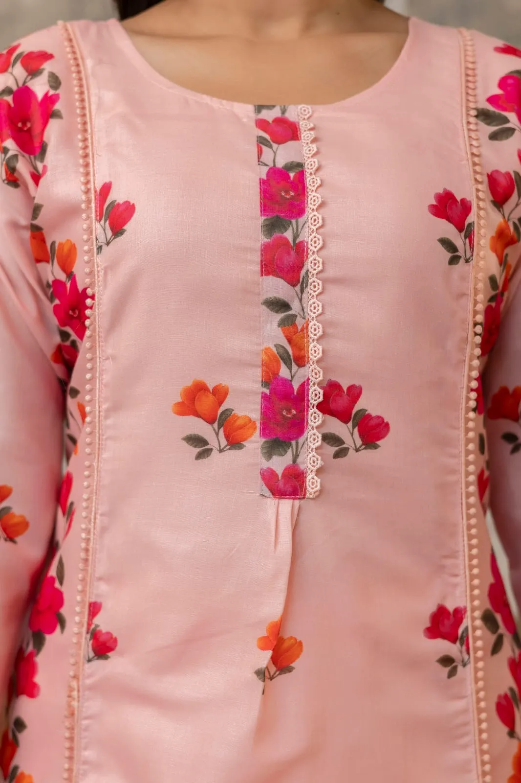Kurti (Top) Fabric & Color: The Kurti is crafted from Premium Cotton in a gentle, flattering Peach hue.