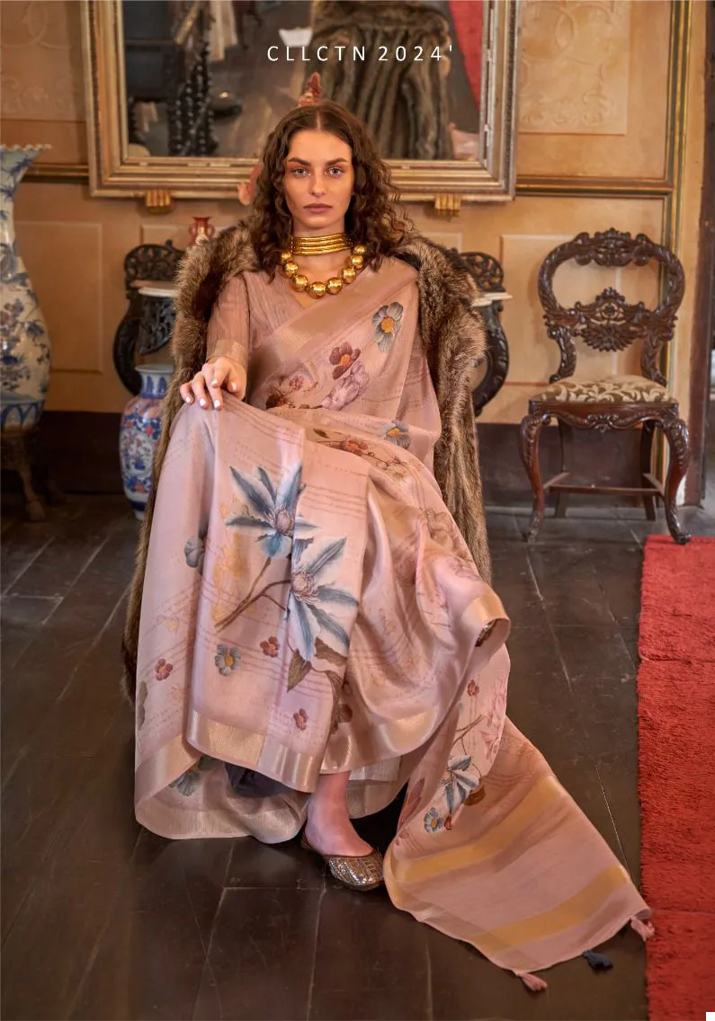 Peach Soft Silk Weave Digital Printed Party Wear Saree