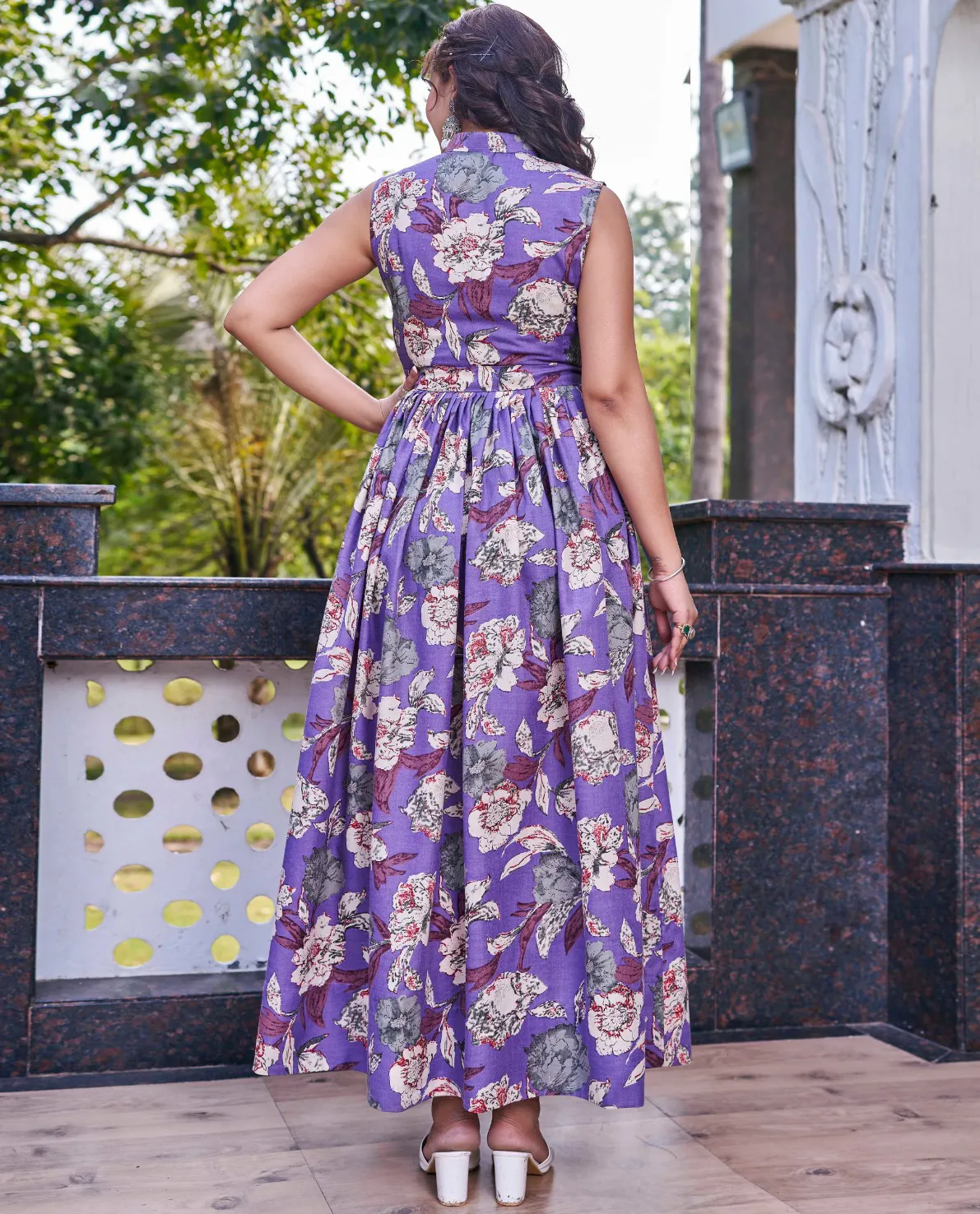 The Design: The gown features a Floral Print all over. The purple color looks very rich and is a popular choice for 2026.