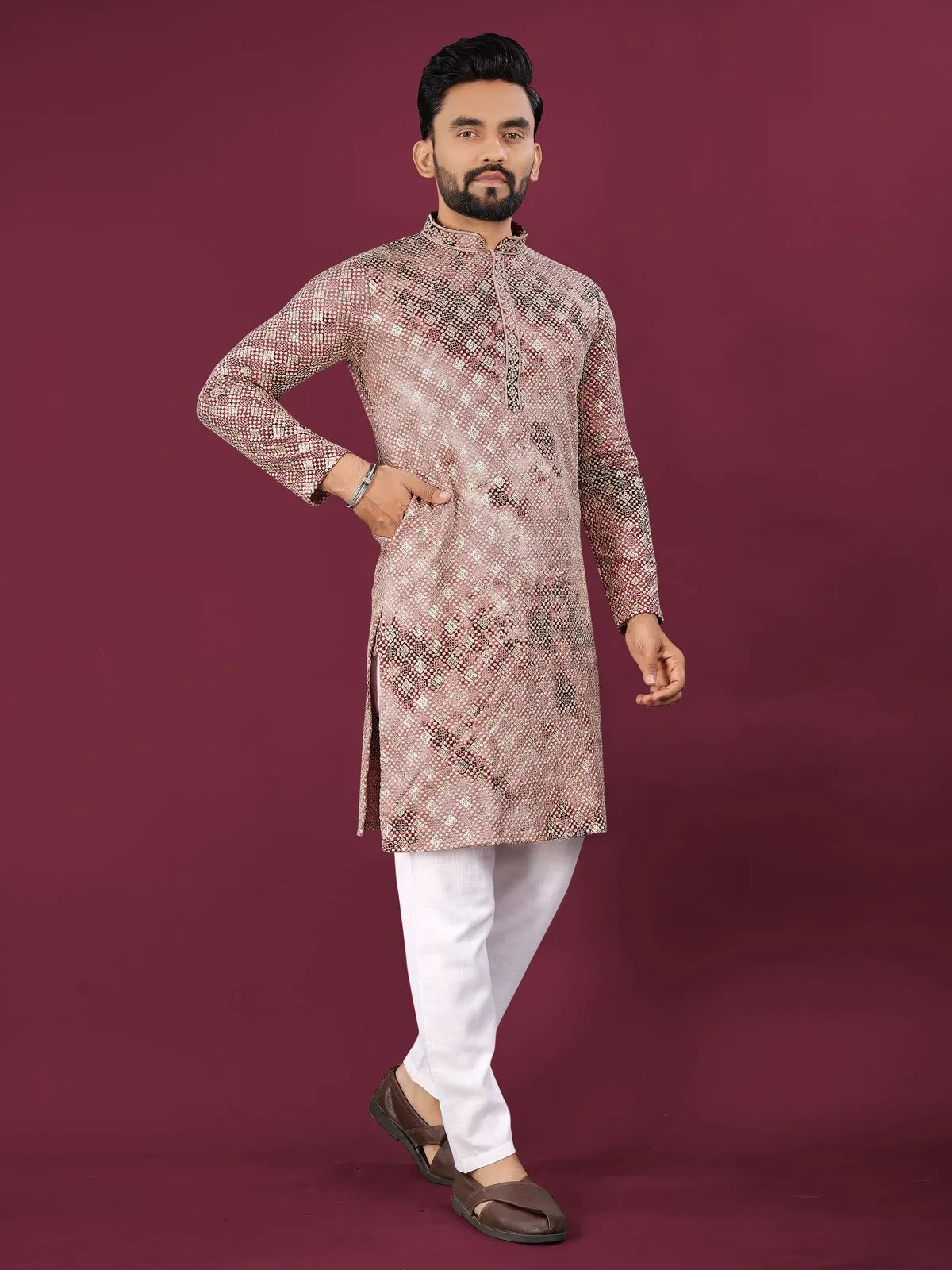 Set: A complete ensemble including the beautifully worked kurta and complementary pajama bottoms.