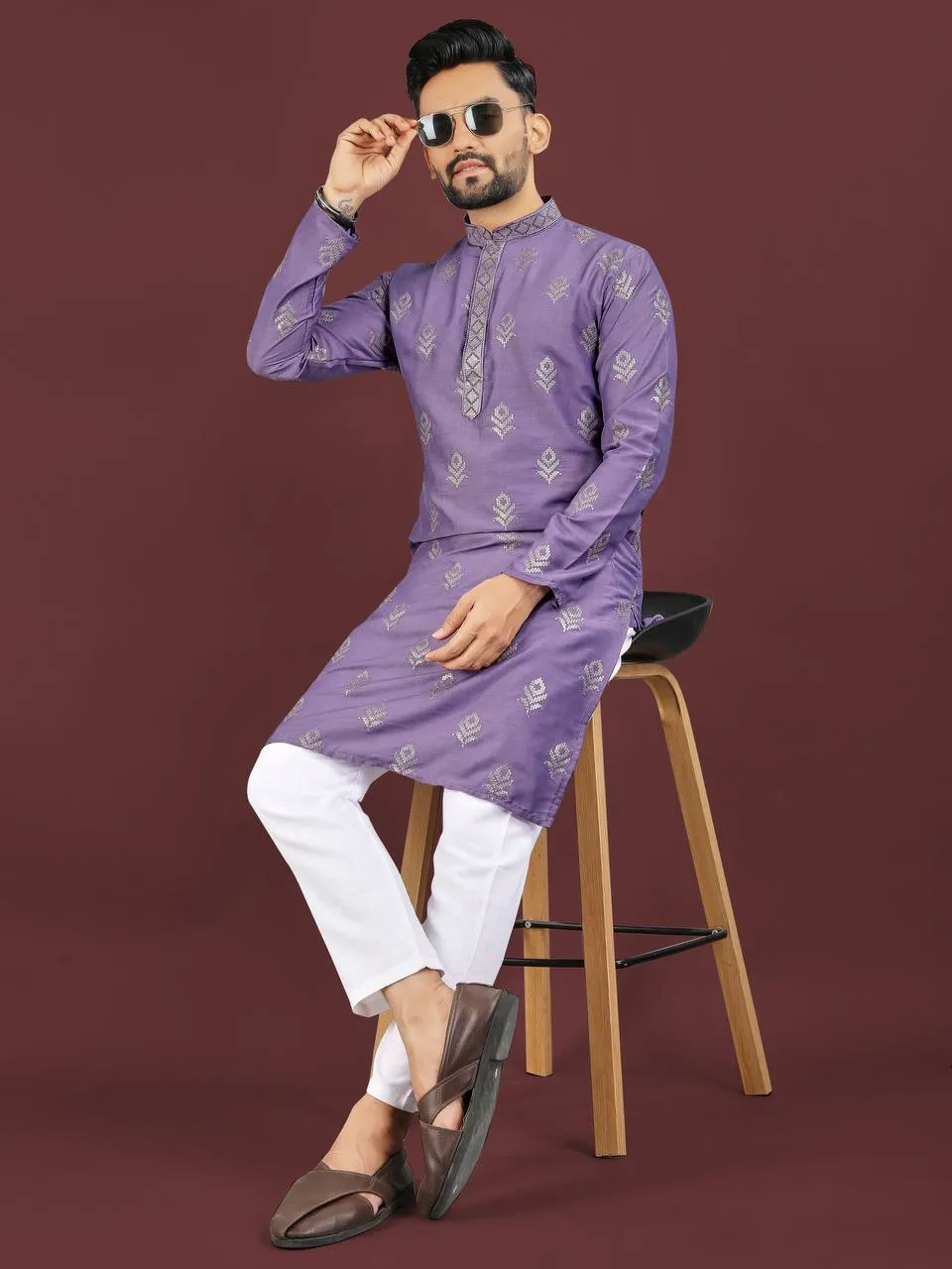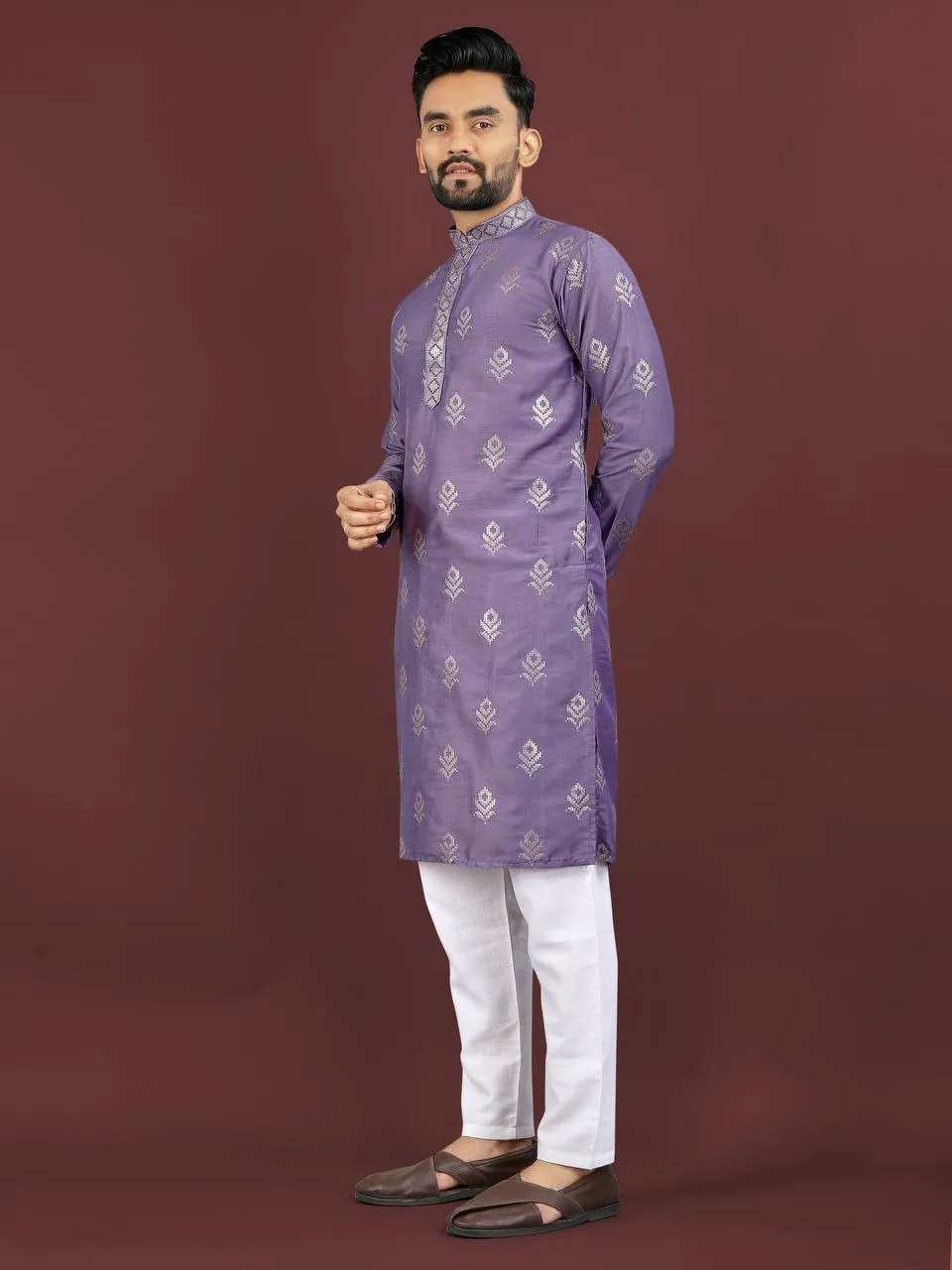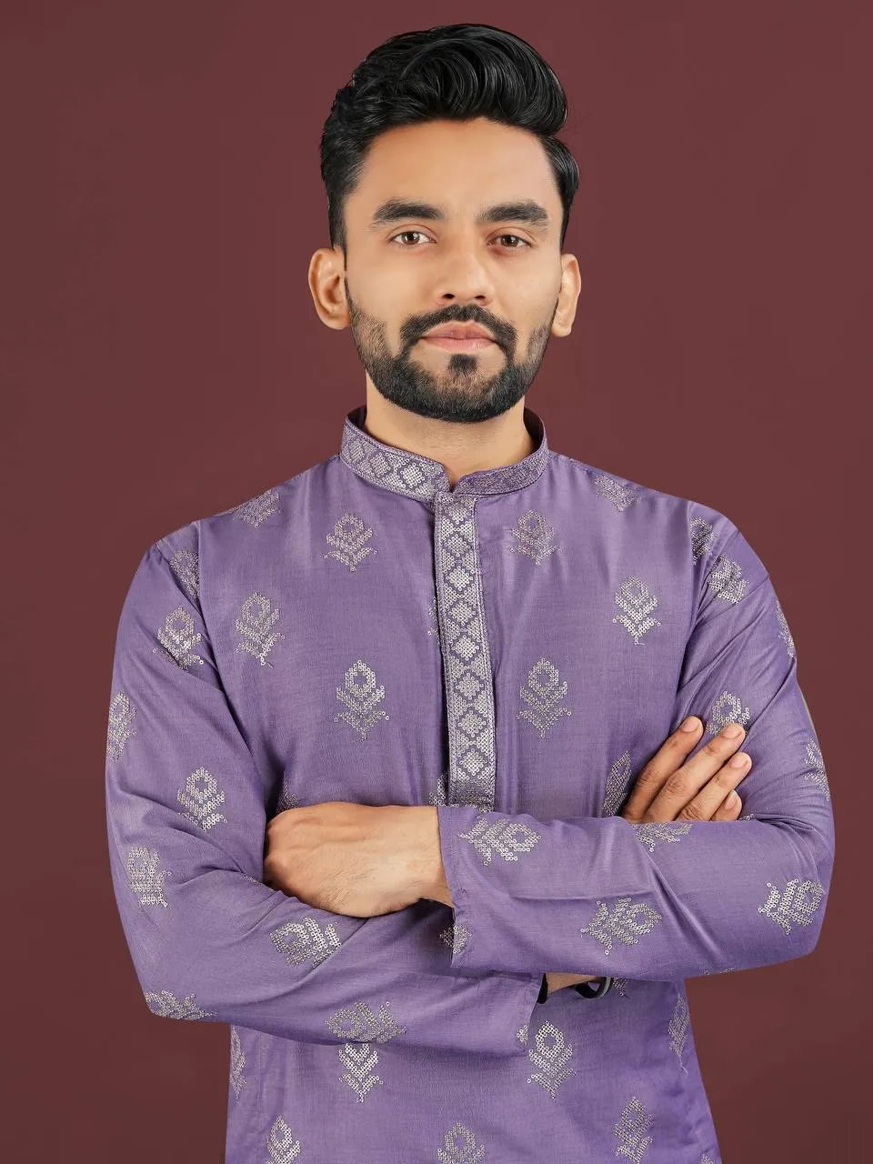 Step into the spotlight with this exquisite Purple Viscose Silk Embroidered Sequence Men’s Kurta Pajama. Combining the purity of Purple with a subtle shimmer, this outfit is designed for grand occasions, ensuring a regal and sophisticated appearance with supreme comfort.