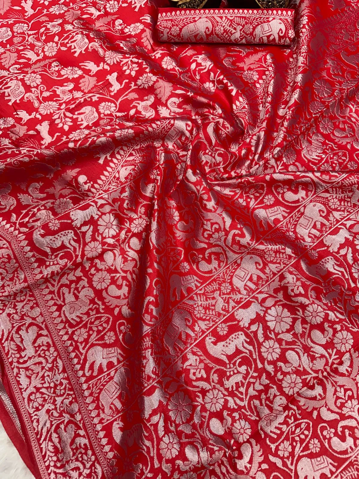 Red Lichi Silk Weaving Work Saree
