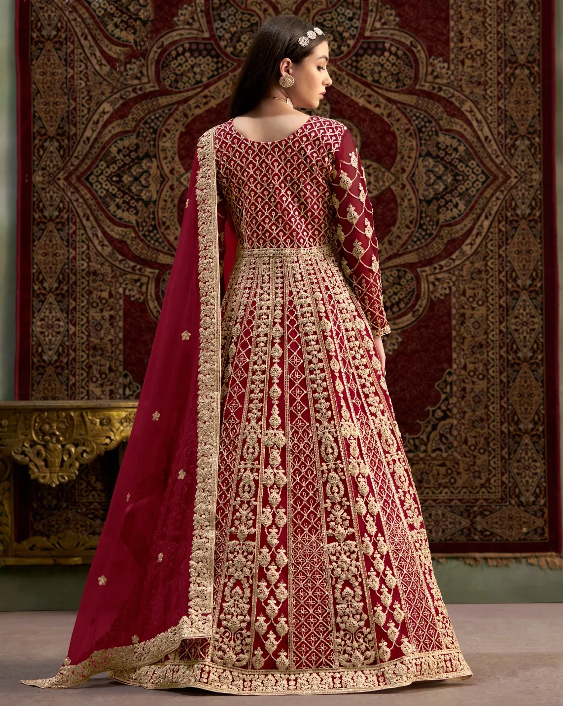 Workmanship: Features Heavy Embroidery, ensuring a dense and rich pattern across the gown, perfect for wedding and ceremonial events.