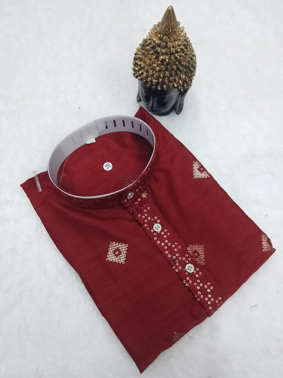 - Fabric: Cotton ensures comfort and breathability, providing a soft contrast to the silk kurta.