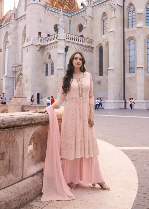 | Details | Real Georgette Top, Real Georgette Palazzo, Embroidered Real Georgette Dupatta |
