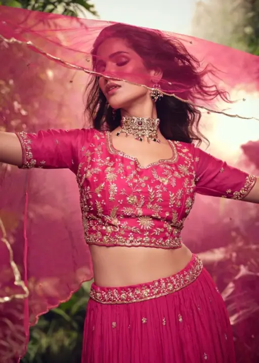 | Details | Premium Real Chinnon Silk (Heavy Silk Embroidered Blouse, Chinnon Silk Embroidered Front and Back Lehenga with Cancan, Embroidered Net Dupatta) |