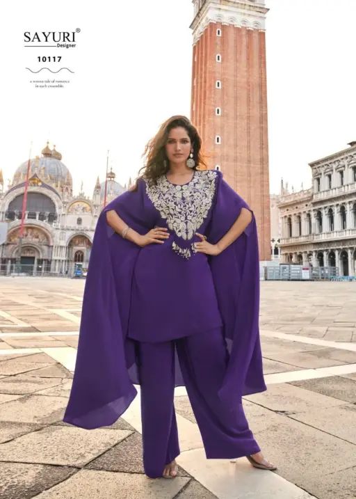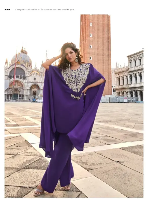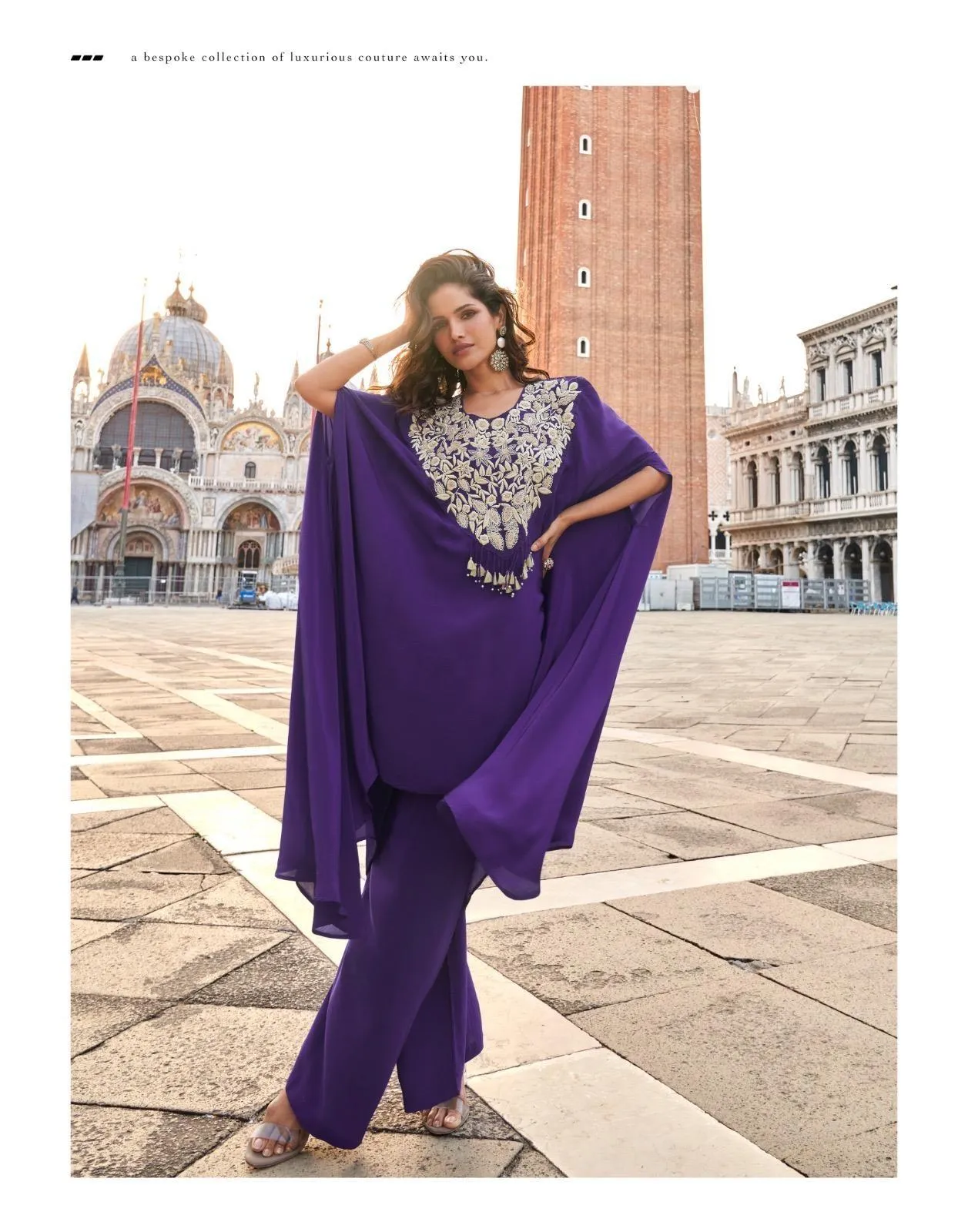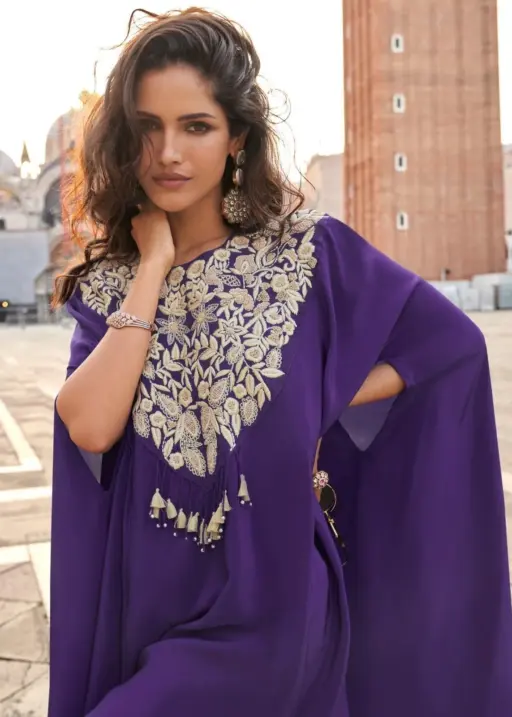 | Details | Premium French Crep Silk / Real Chinon Silk Hand Embroidered Long Cut Style Top With Plazzo |