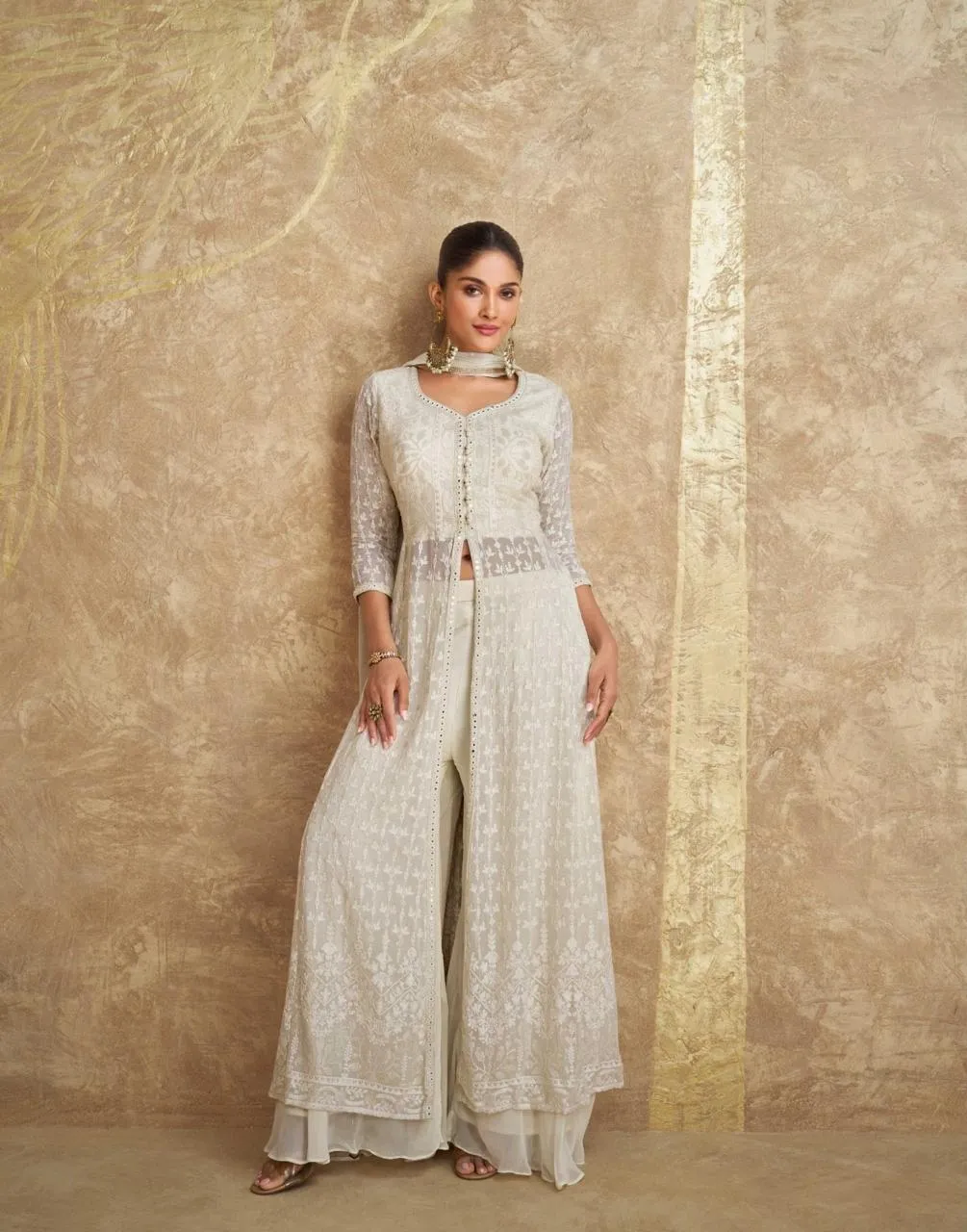 | Details | Premium Real Georgette (Heavy Embroidered Dress with Palazzo and Dupatta) |