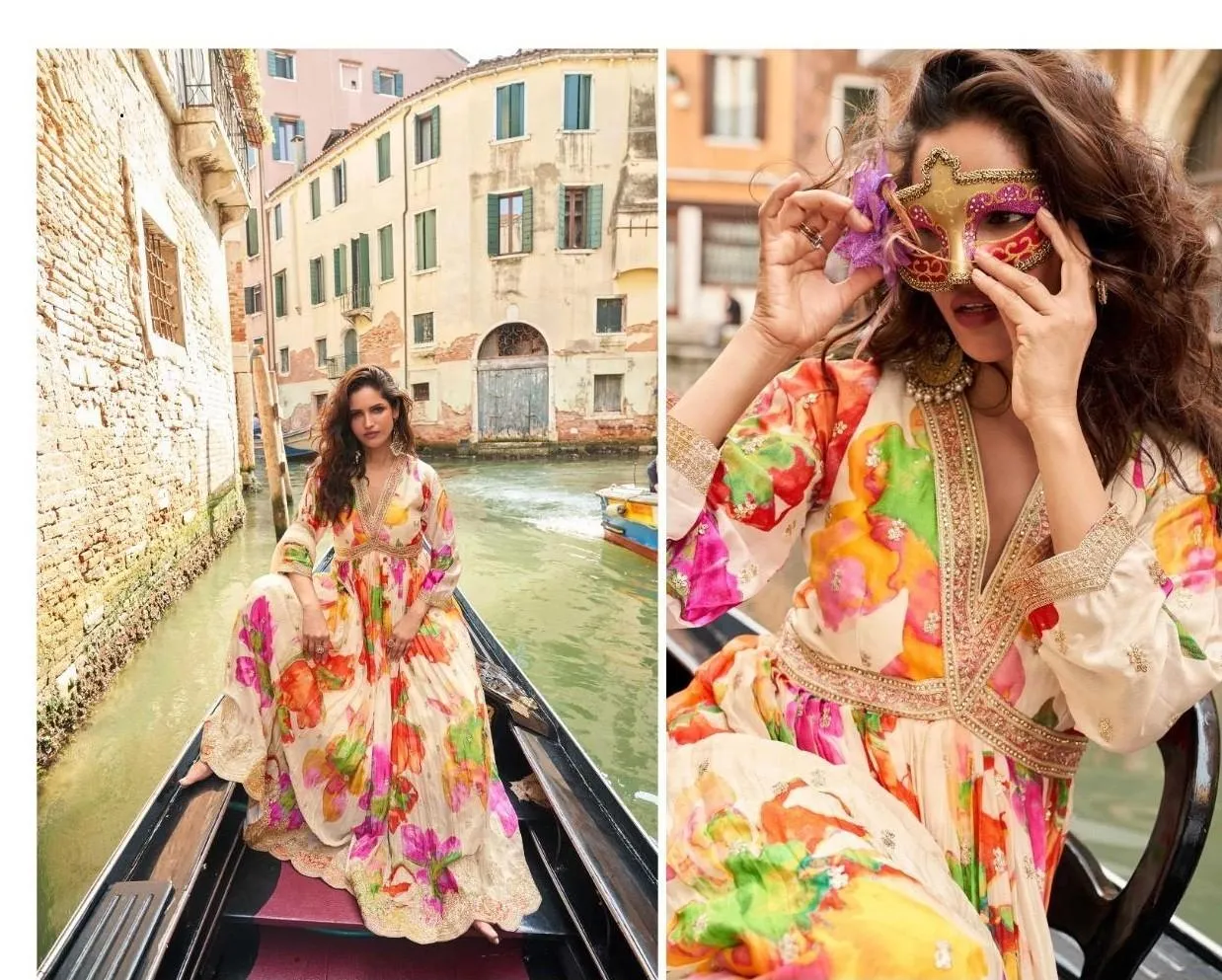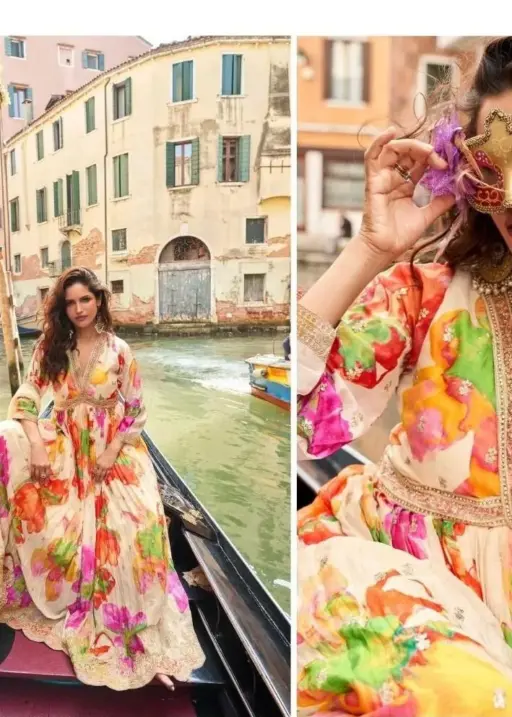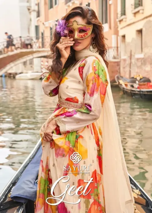 | Details | Premium Real Chinon Silk ( Festive Look Front And Back Embroidered Digital Chinon Silk Gown With Dupatta ) |