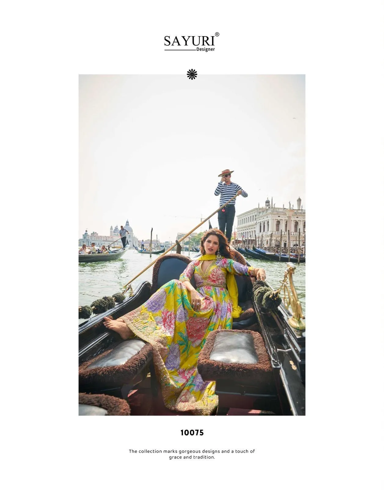 | Details | Premium Real Chinon Silk ( Festive Look Front And Back Embroidered Digital Chinon Silk Gown With Dupatta ) |