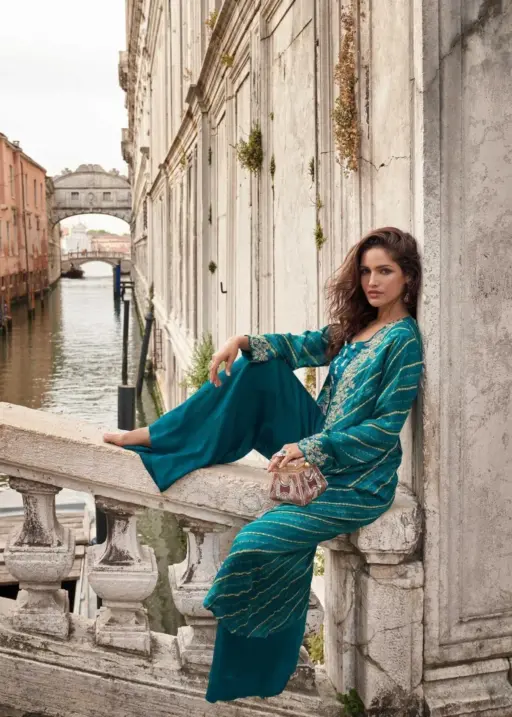 | Details | Premium Real Chinon Silk / Viscos Jacquard Silk (Tredy Festive Look Front And Back Embroidered Shrug With Embroidered Blouse On Hand Embellished Mirror Work With Stylist Plazzo) |