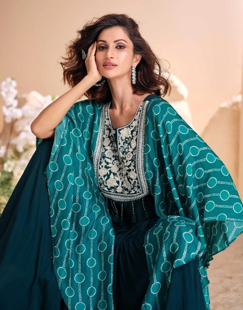 | Details | Premium Real Chinnon Silk (Full Heavy Look Hand Moti Embroidered Chinnon Silk Gown with Digital Sleeves) |