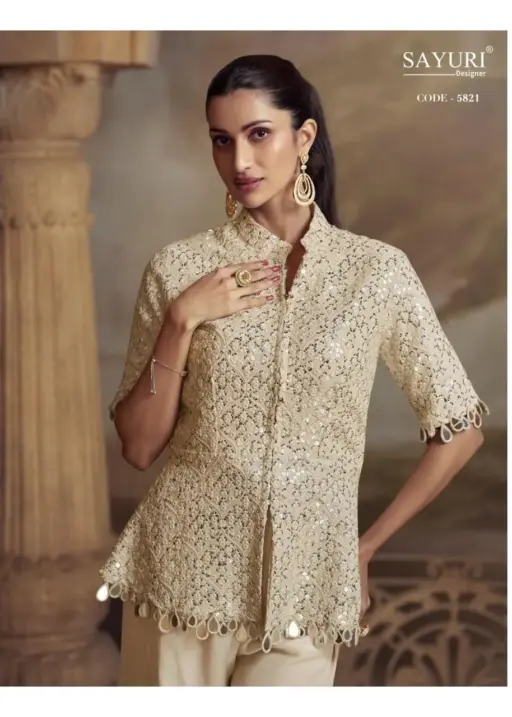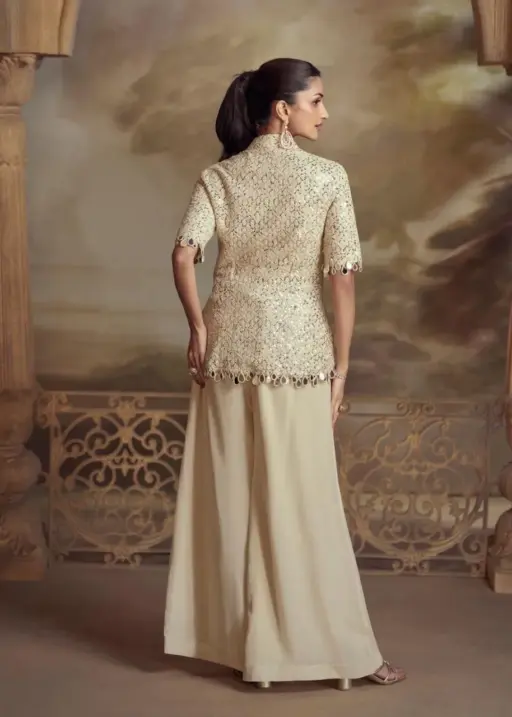 | Details | Pure Viscos Simar Butti/ Premium Realgerogette/Net( Latest Trendy Front And Back Embroidered Top With Mitror Stone Work With Plazzo And Tassales Dupatta ) |