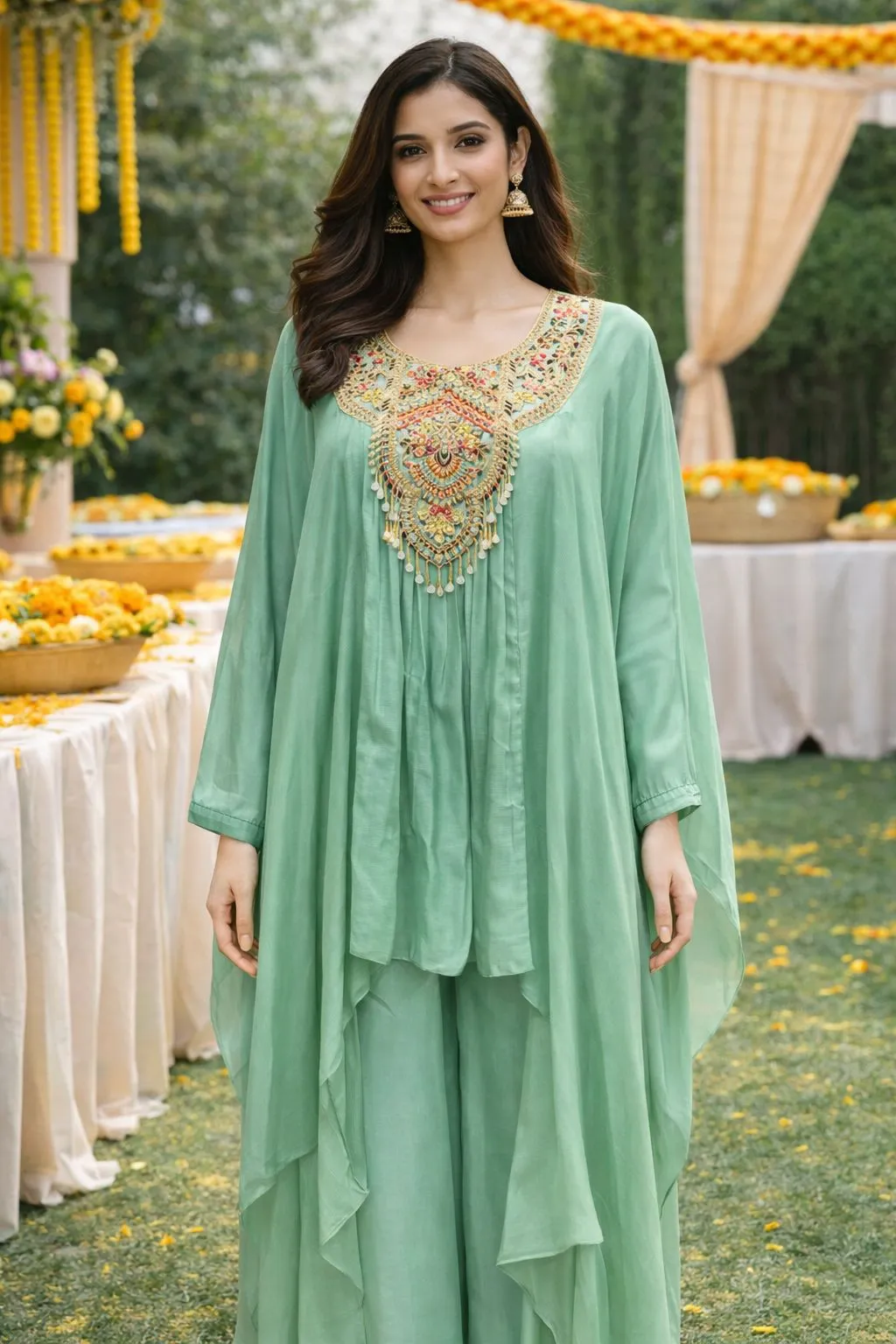 The Style: Because it is an Indo-Western Set, it mixes Indian embroidery with a modern pant style. It is very easy to wear and move in.