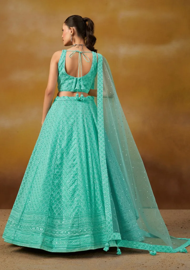 Sky Blue Georgette Sequins Embroidered Lehenga