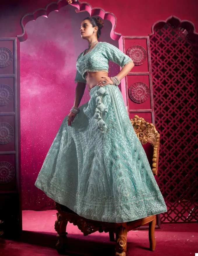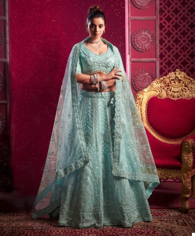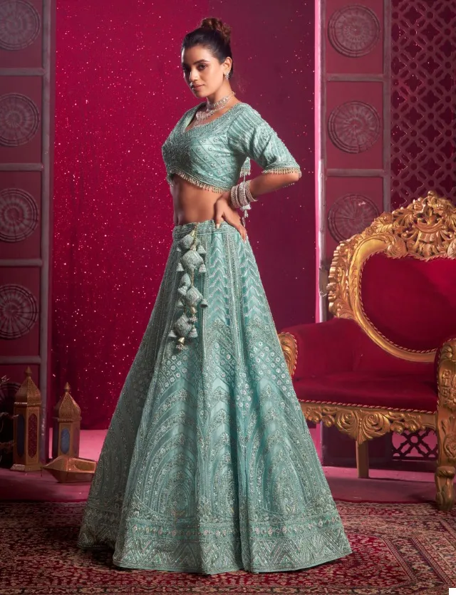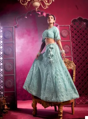 - Fabric: Constructed from high-quality Premium Net, giving the lehenga a delicate yet voluminous presence.