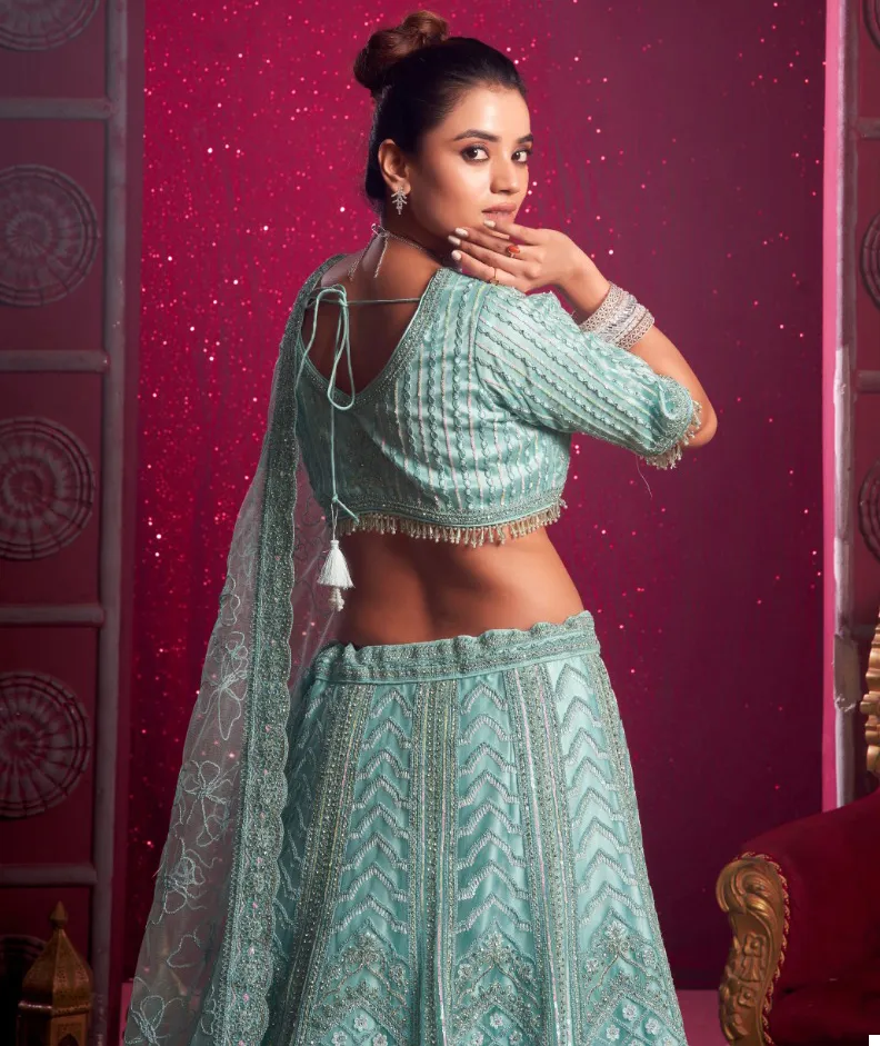 - Color: A beautiful, eye-catching Sky Blueโideal for festive occasions, mehendi, or wedding receptions.