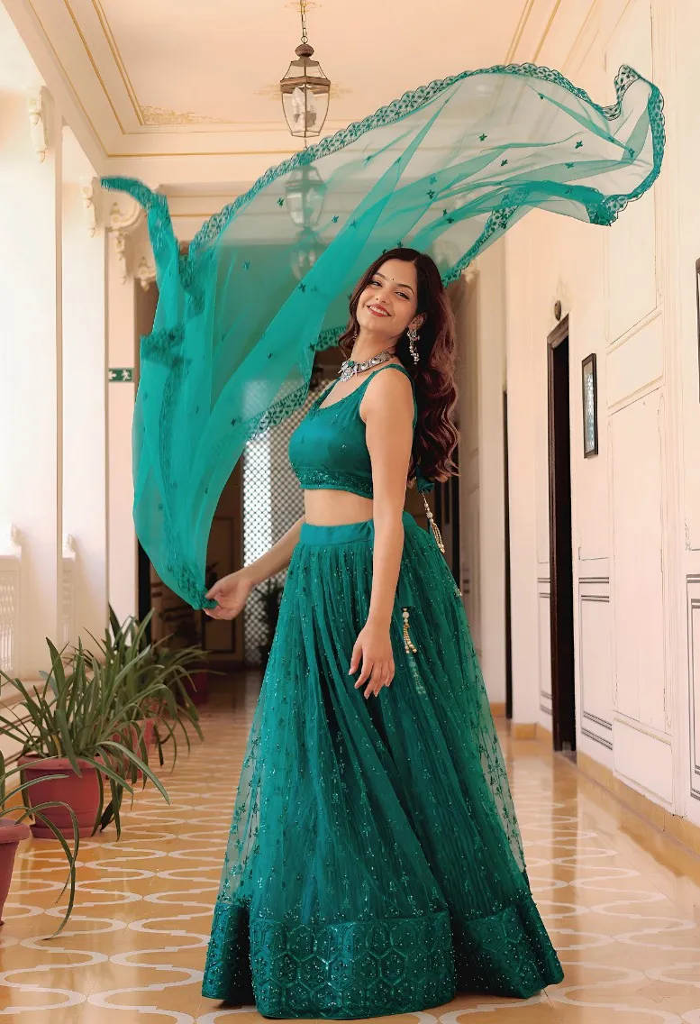 Support Structure: To ensure the net fabric maintains its shape, the lehenga comes with Canvas and Cancan layers attached, providing a structured, flared look.