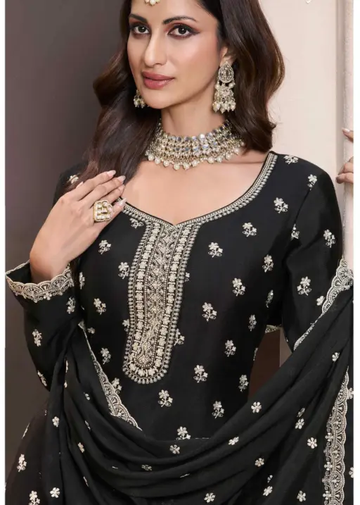 | Details | Designer Thread Embroidered Chinnon Top (Unstitched), Designer Thread Embroidered Sharara Bottom (Stitched), Designer Thread Embroidered Chinnon Dupatta |