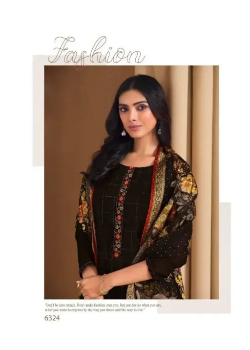 | Details | Chinnon Chiffon Top with Embroidery Work, Soft Santoon Bottom & Inner, Organza Brasso Print Dupatta with All Over Swarovski Work ( Semi Stitch Product ) |