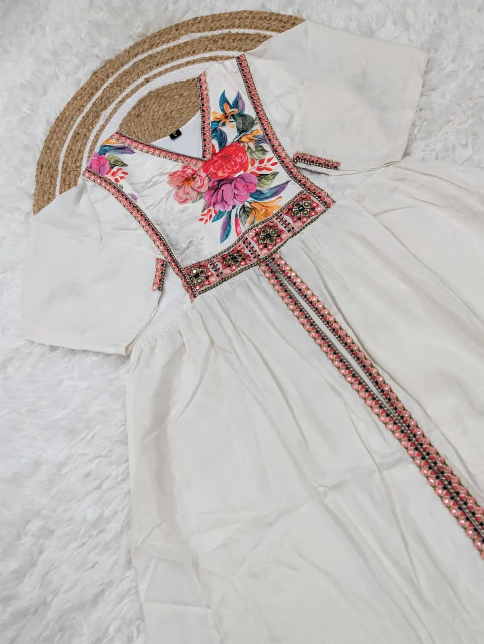 - The Length: The top is 45+ inches long, which is a graceful “Long Kurta” style.