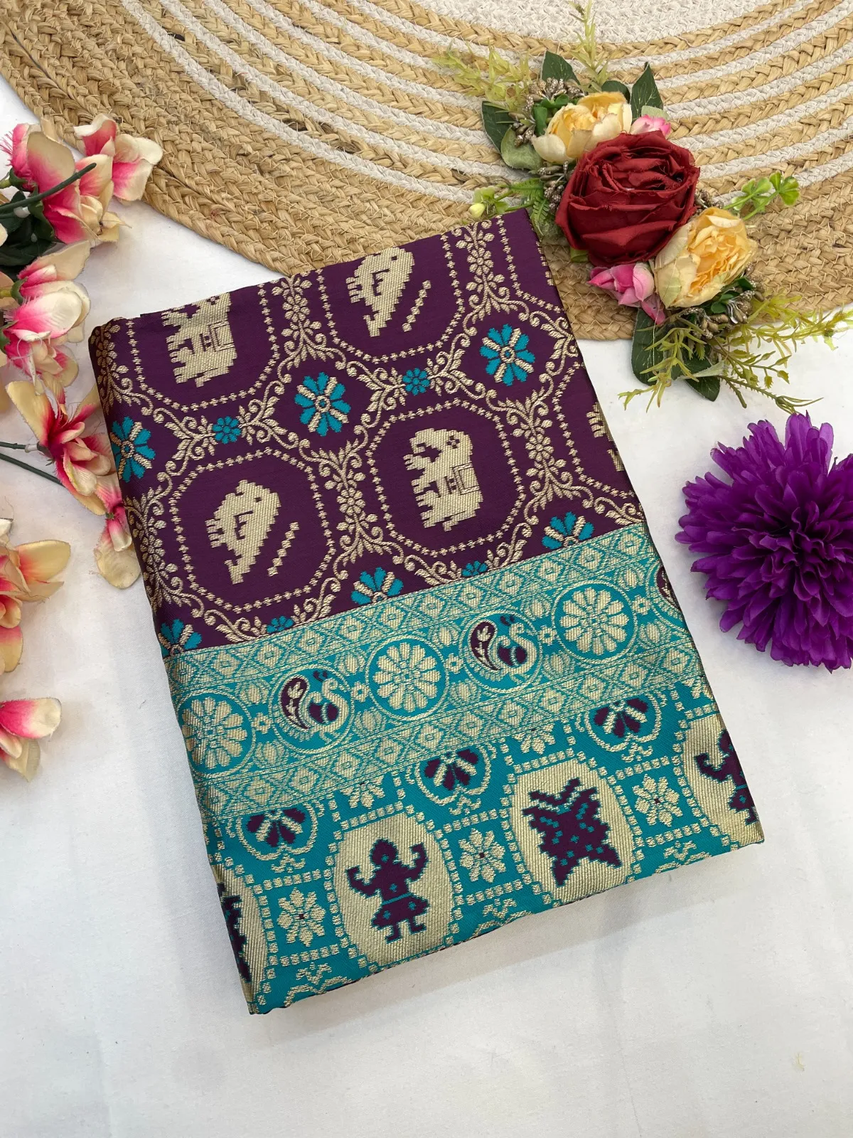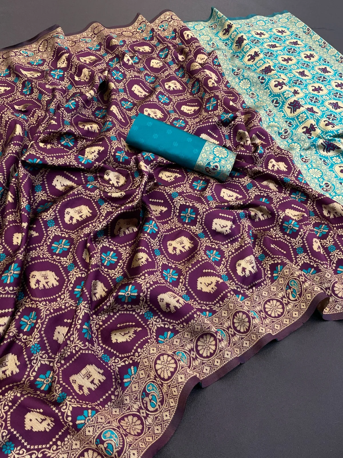 This magnificent Wine Banarasi Silk Weaving Work Saree is the epitome of heritage craftsmanship and timeless elegance. Banarasi silk is highly prized for its traditional weaving artistry. Combined with the rich texture of the silk and a complementing brocade blouse, this ensemble is perfect for weddings, traditional ceremonies, and grand celebratory occasions.