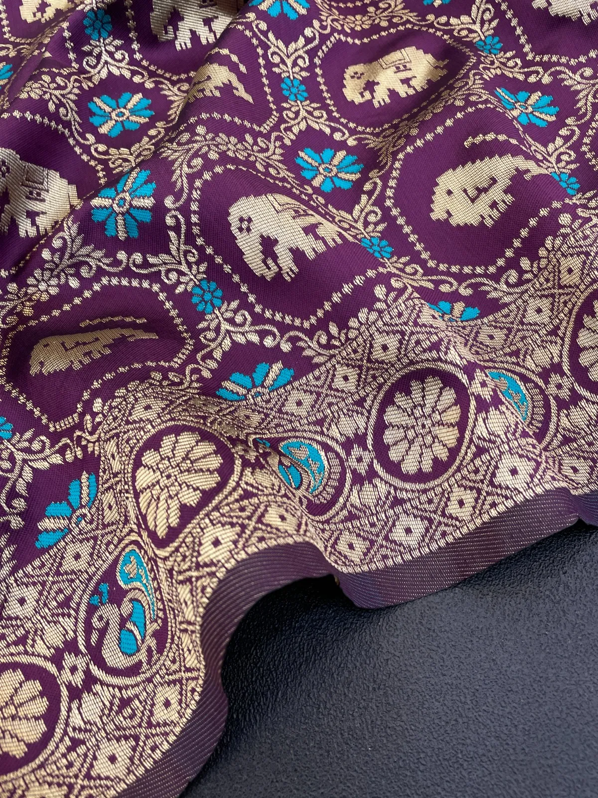 Weaving/Workmanship: Features Weaving Work. This traditional Banarasi technique creates intricate patterns (motifs, borders, or all-over designs) directly into the fabric using metallic Zari or colored threads, resulting in a rich, multi-dimensional texture and an authentic look.