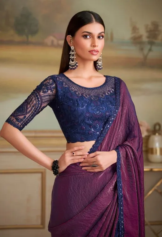 Wine Twilight Georgette Border Work Saree With Heavy Blouse