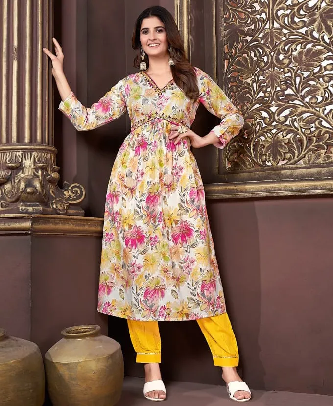 Yellow Premium Rayon Handwork Readymade Salwar Suit