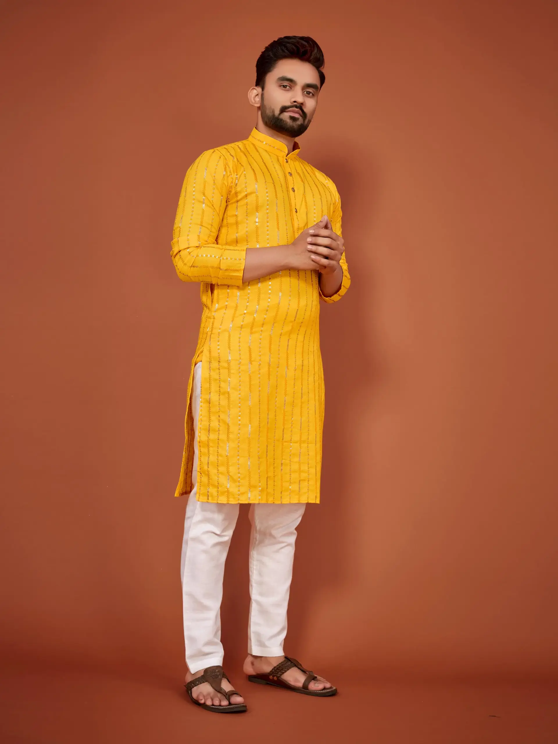 Work: Features tasteful Sequins Work that adds a subtle, modern sparkle and texture, elevating the kurta from simple casual wear to festive attire.
