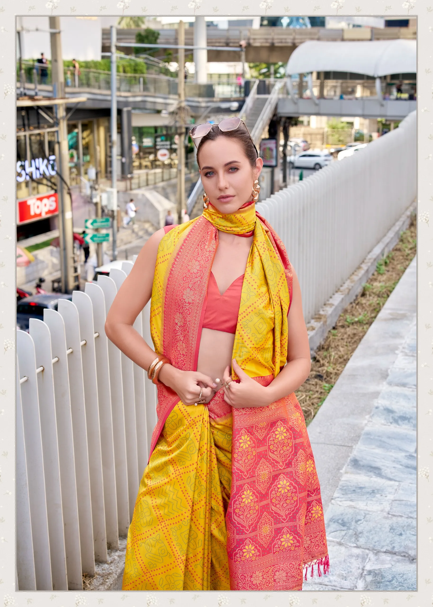 Yellow Soft Silk Bandhani Weaving Saree