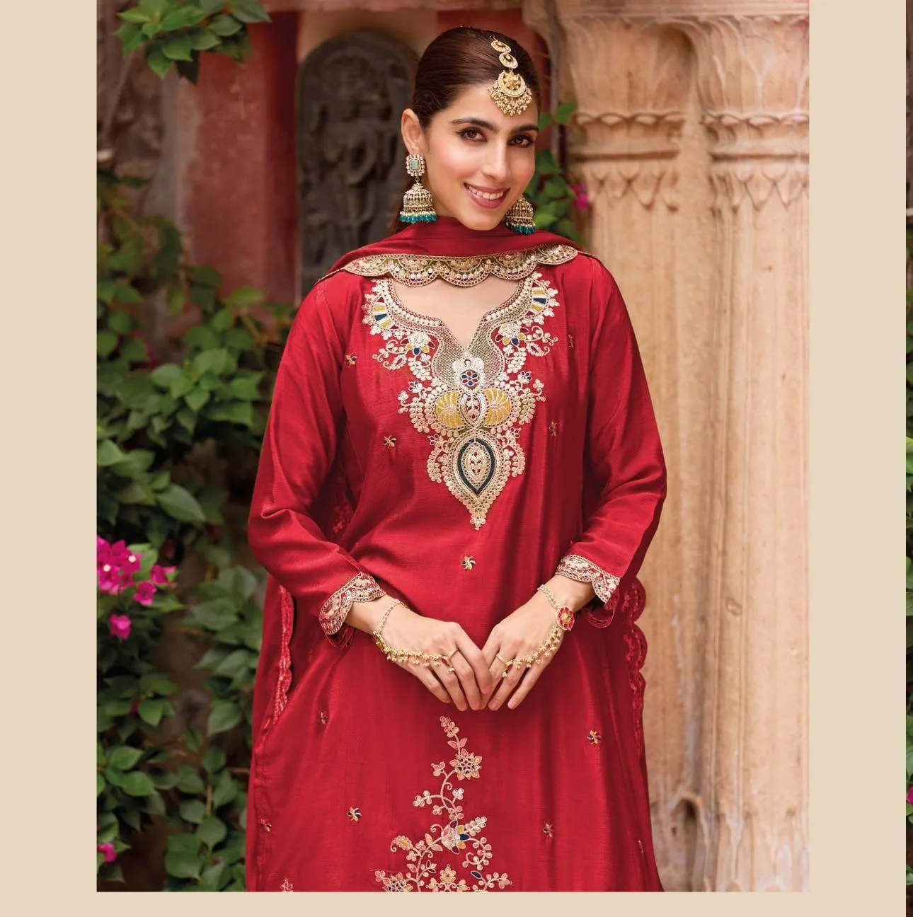 Details Top Cinon Silk With Embroidery Foil Work Dupatta Cinon Silk With Embroidery